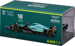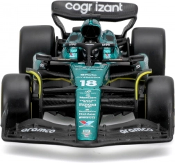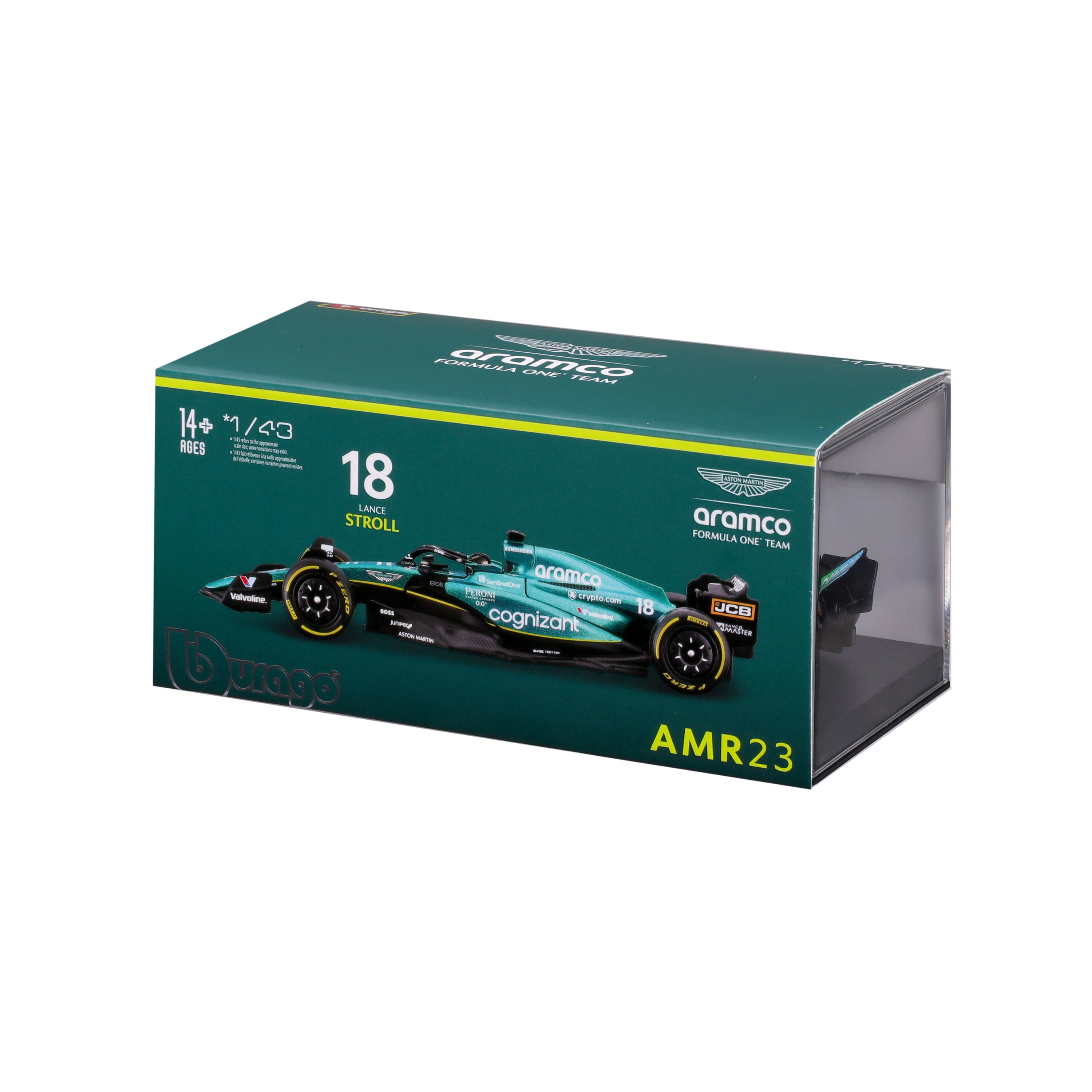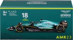 Denne præcist udførte model af Aston Martin AMR23 i skala 1:43 gengiver trofast formen på 2023‑monoposten med nummer 18, kørt af Lance Stroll. Den udmærker sig ved autentisk lak i racergreen, detaljerede sponsorlogoer og nøjagtig udførelse af vinger, diffuser og halo‑sikkerhedsbøjle.