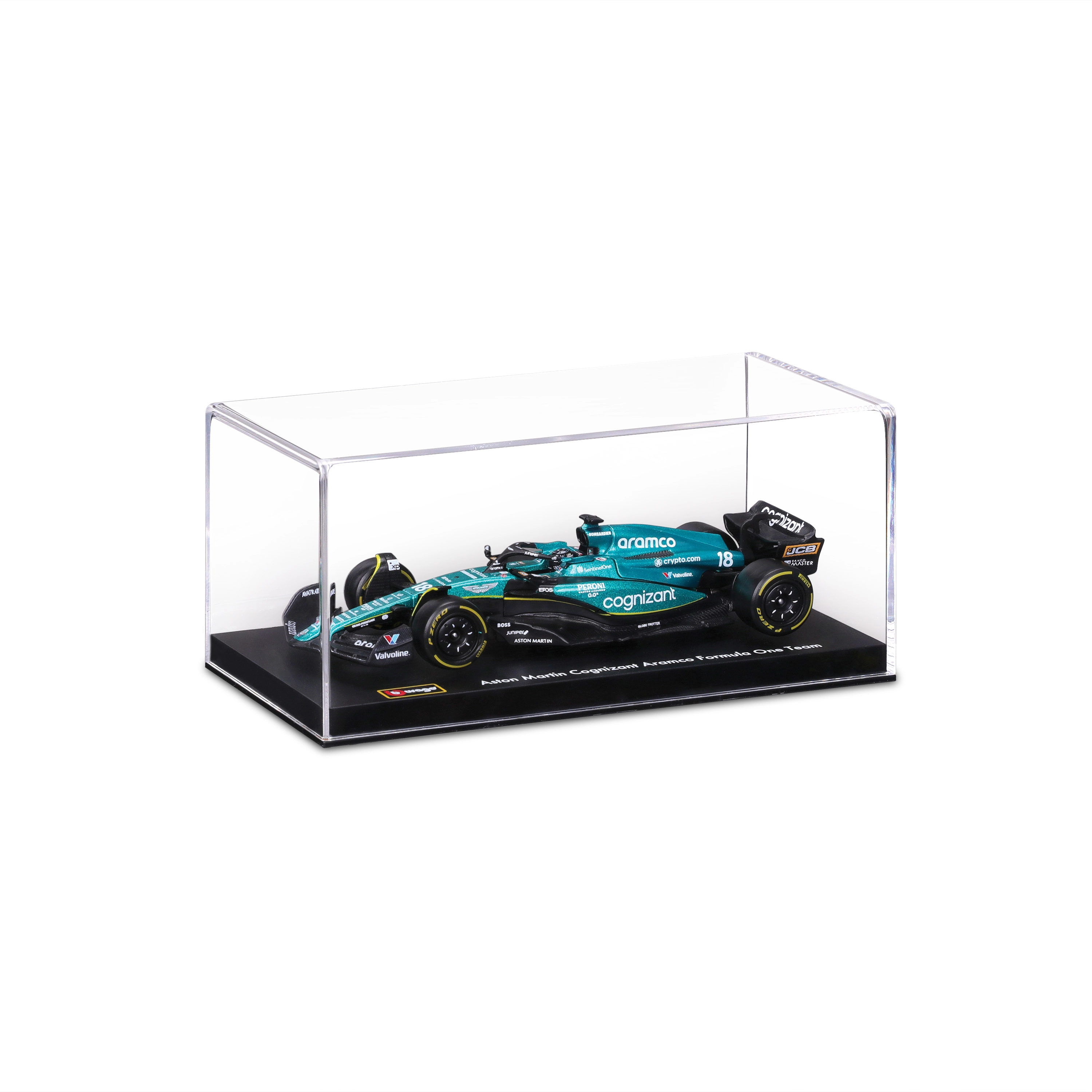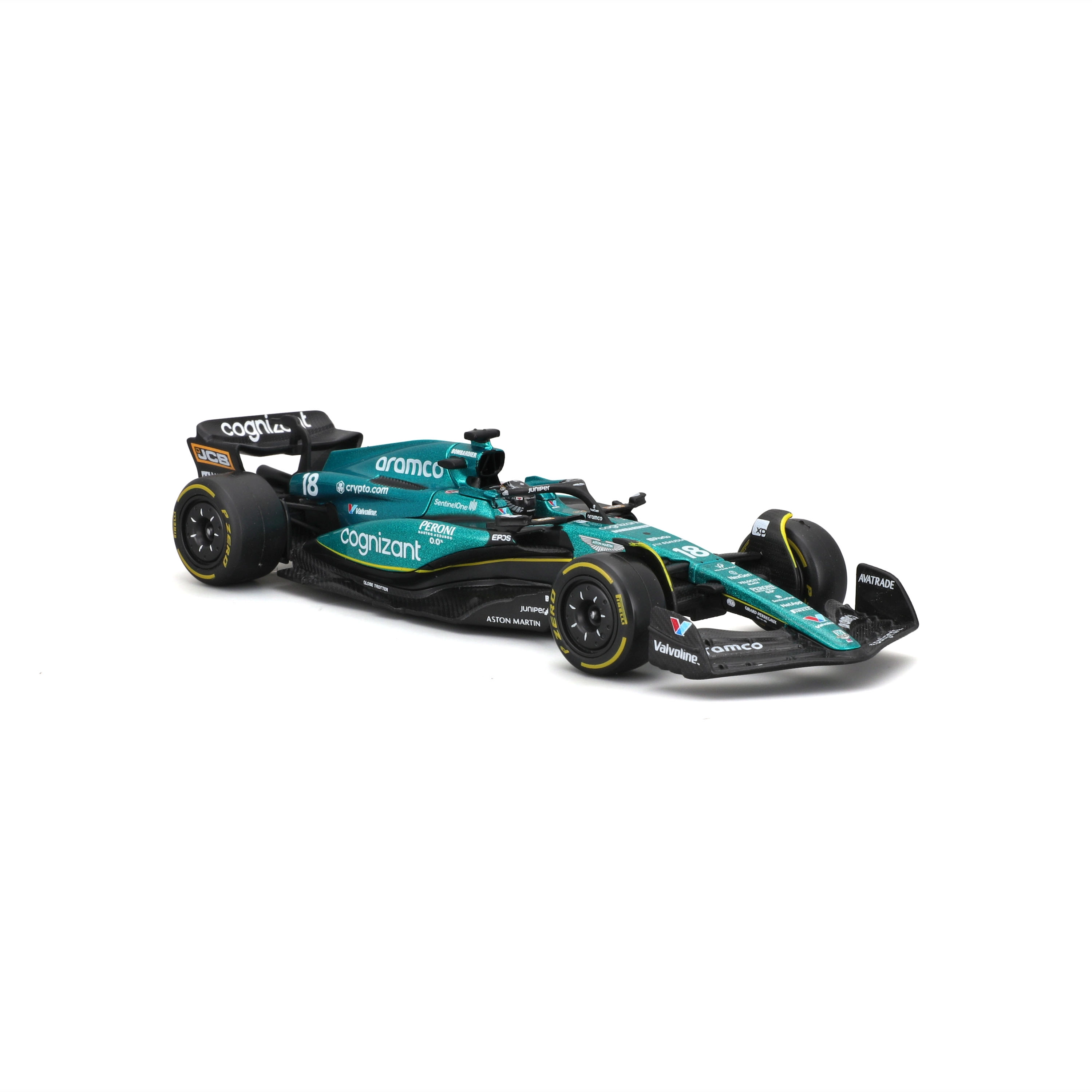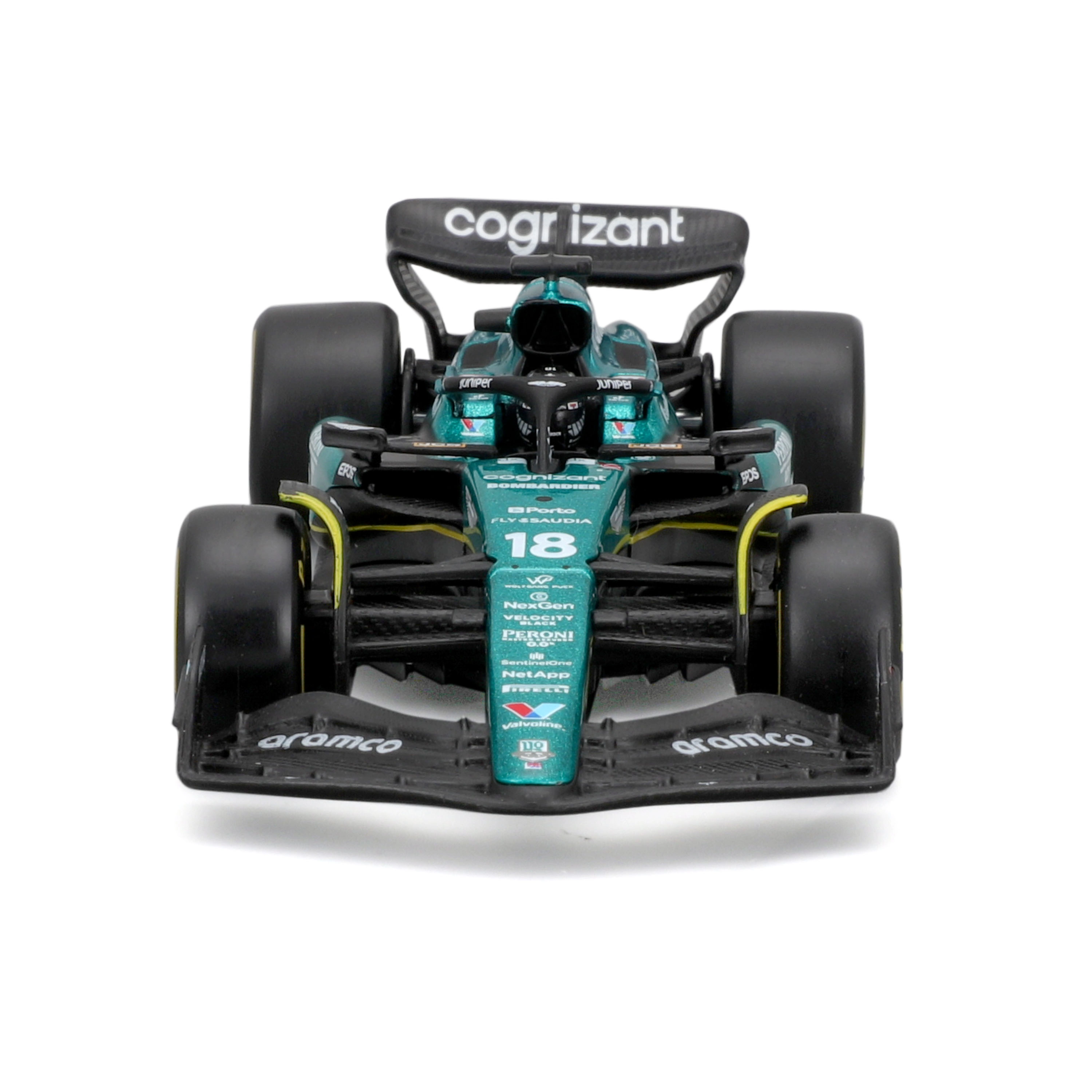Tro mod Aston Martins farver, sponsorlogoer og præcist formede vinger, halo og diffuser for et maksimalt autentisk udseende.