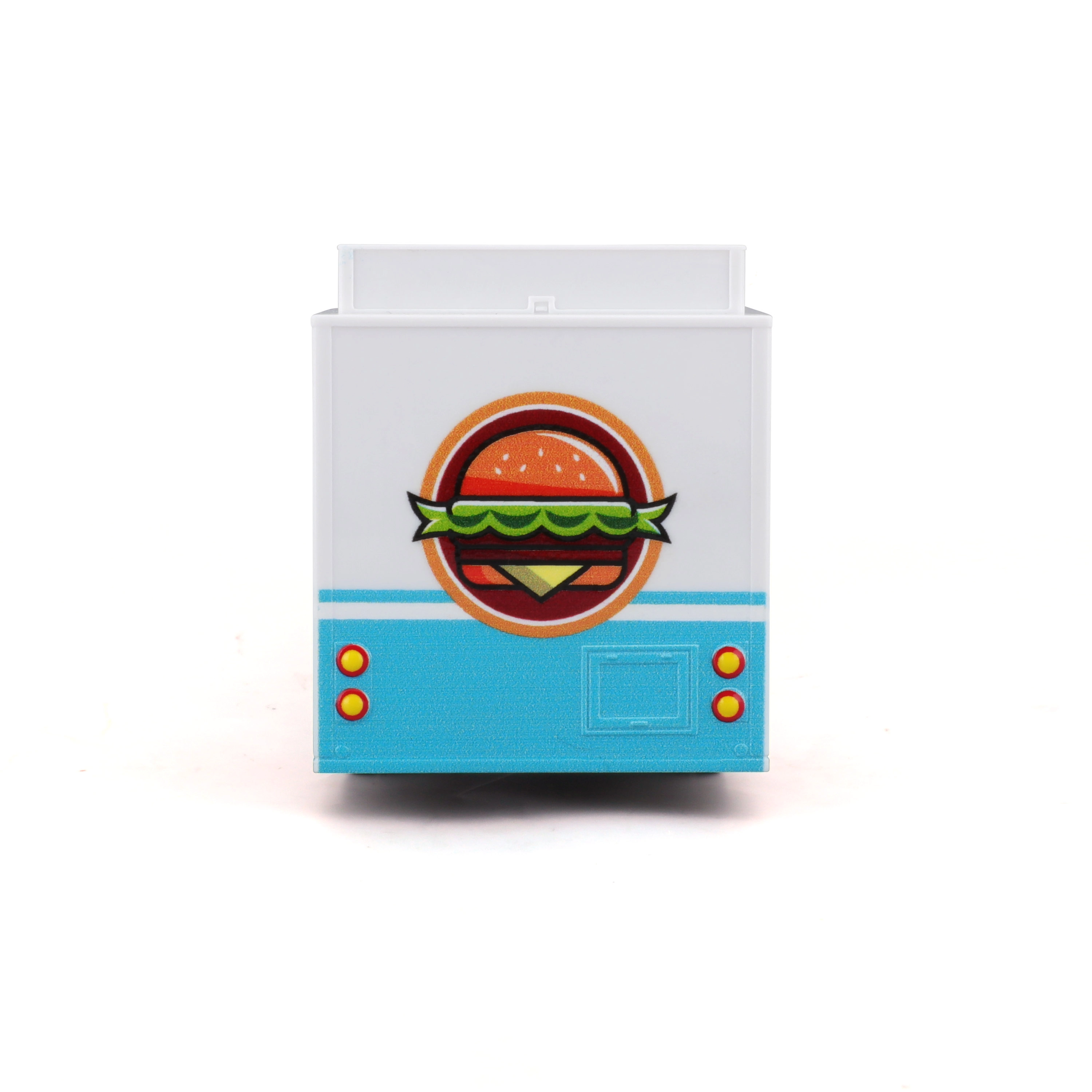 Menutryk, burgergrafik og formede lygter giver trucken et autentisk look, der straks trækker børn ind i legen.