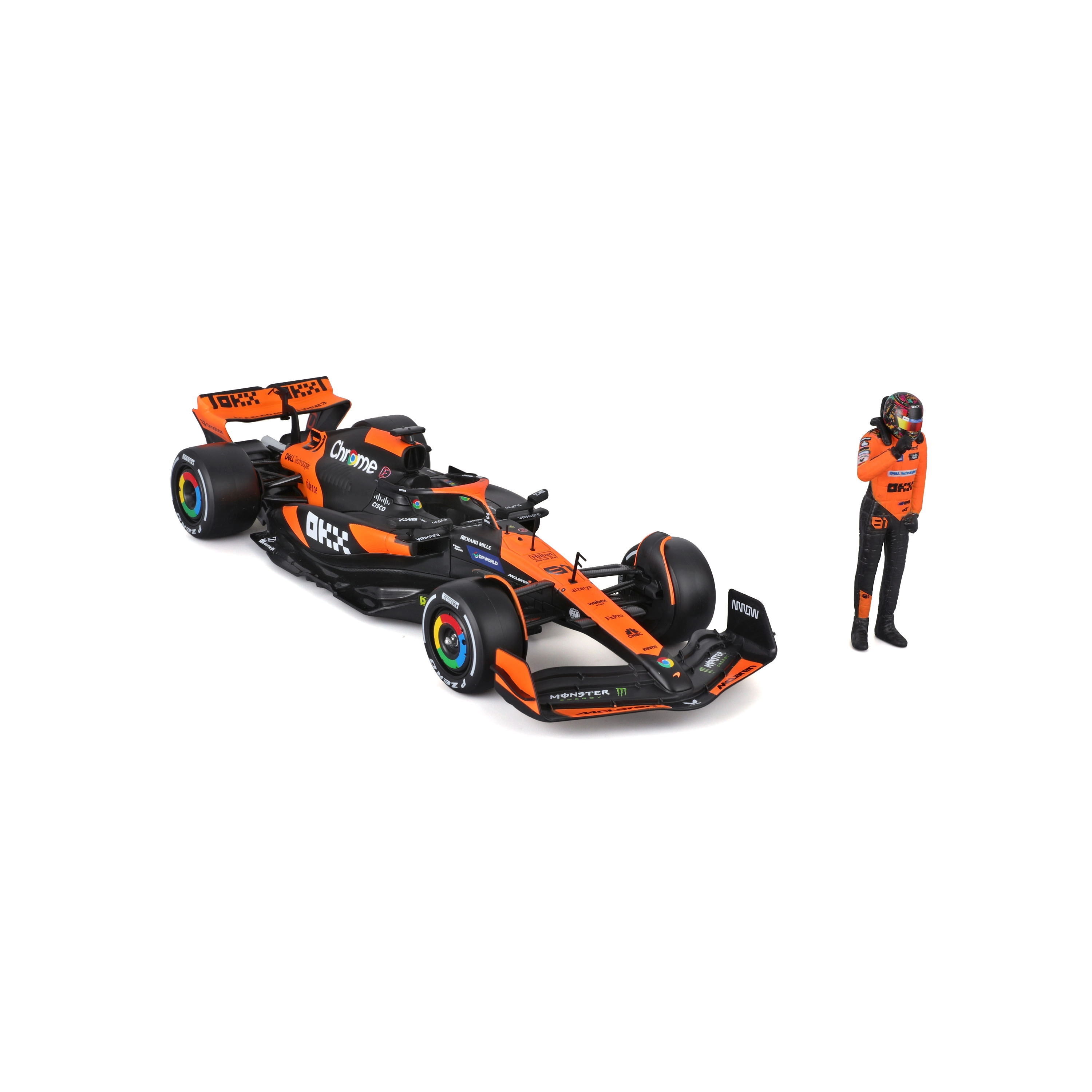 Denne højt detaljerede model af McLaren MCL38 fanger det aktuelle sæsonlook med sponsorlogoer, præcis aerodynamik og det tro orange-sorte farvetema. Takket være kvalitetslakering og fin trykdetaljering fremstår den som en miniature af den ægte bil klar til start.