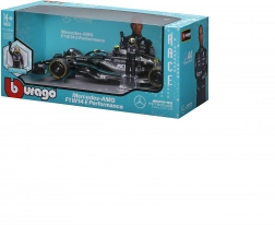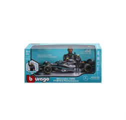 Modellen i skala 1:24 kombinerer kvalitetsmaterialer og omhyggelige detaljer: fra for- og bagvinge, via diffusor til halo og cockpit. Hjulene roterer frit for en overbevisende præsentation, og den gennemsigtige vitrineboks fra Bburago beskytter modellen og fremhæver den elegant.