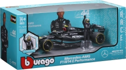 Sættet inkluderer en figur af køreren i racerkombination og hjelm – ideel til udstilling ved siden af modellen.