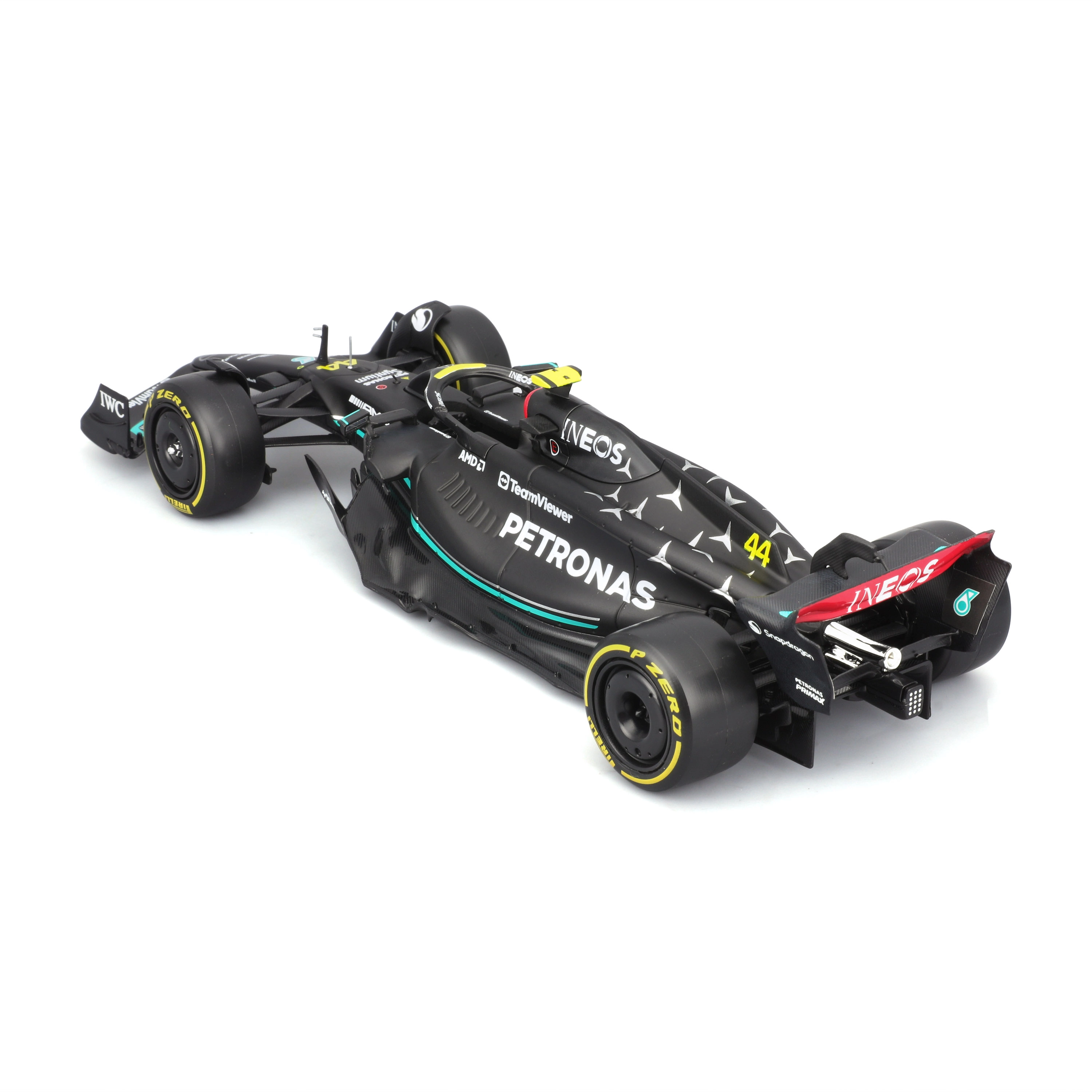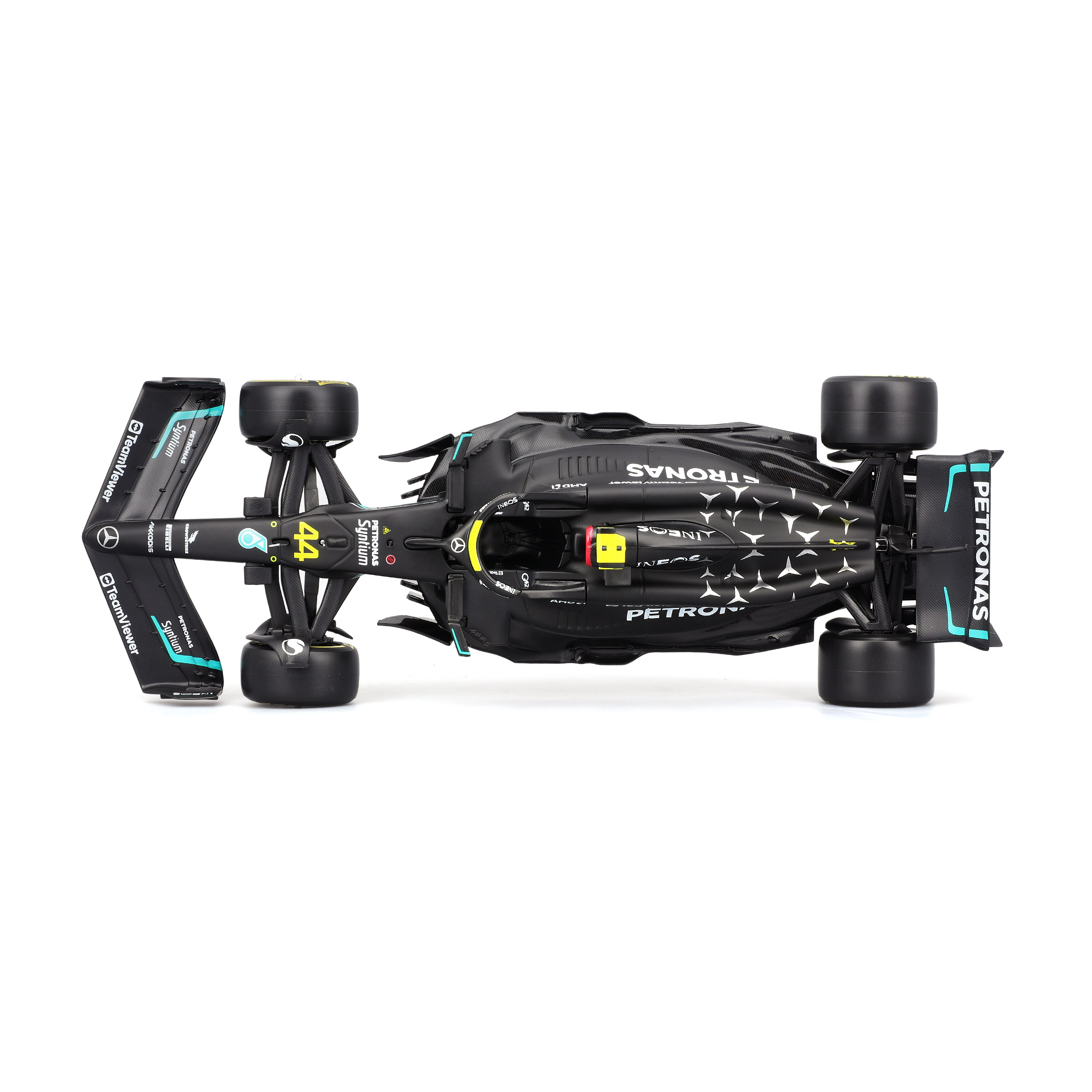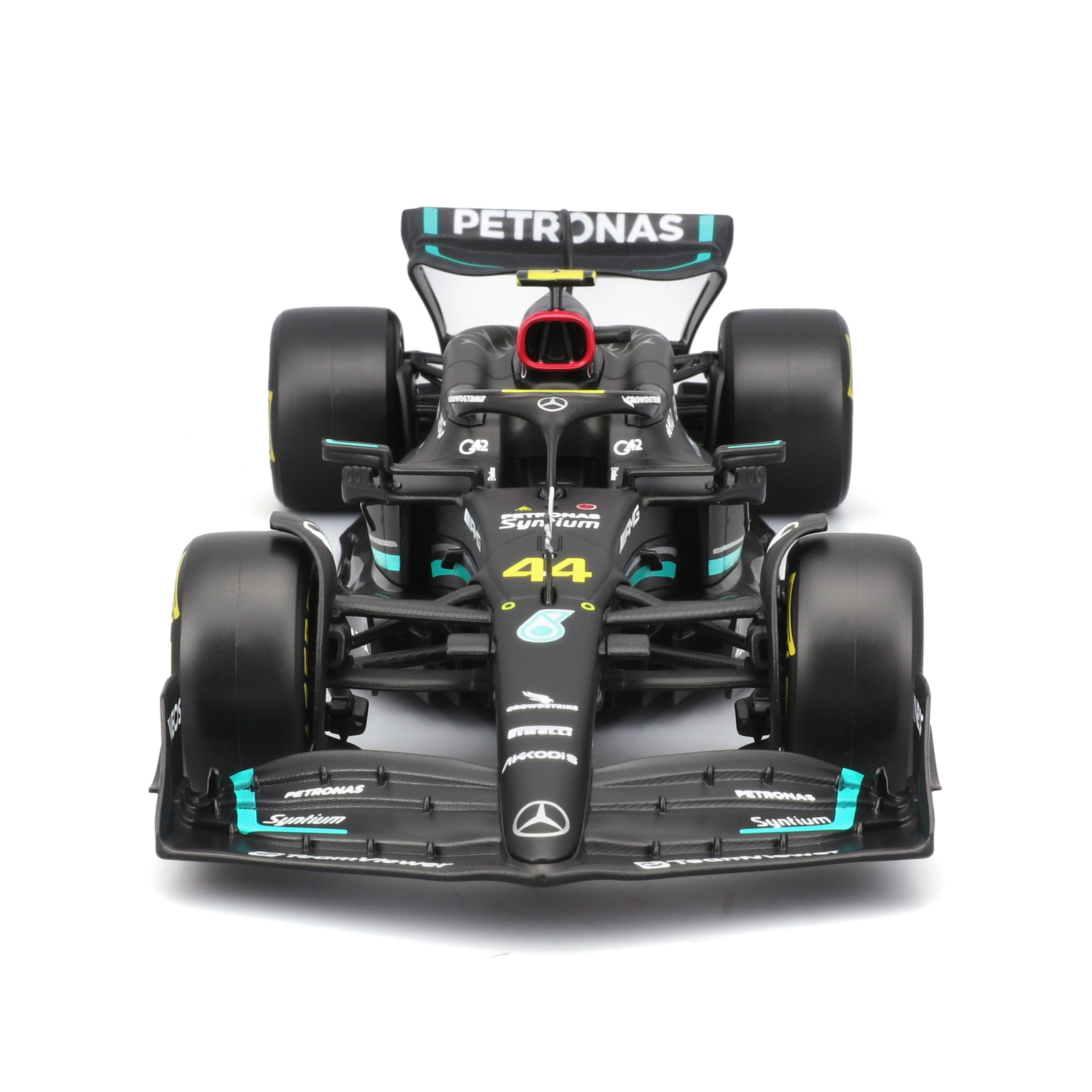 Den detaljerede karrosseriudformning, præcise aerodynamiske elementer og den autentiske PETRONAS-farvekombination fremhæver dette monoposts racer-DNA.