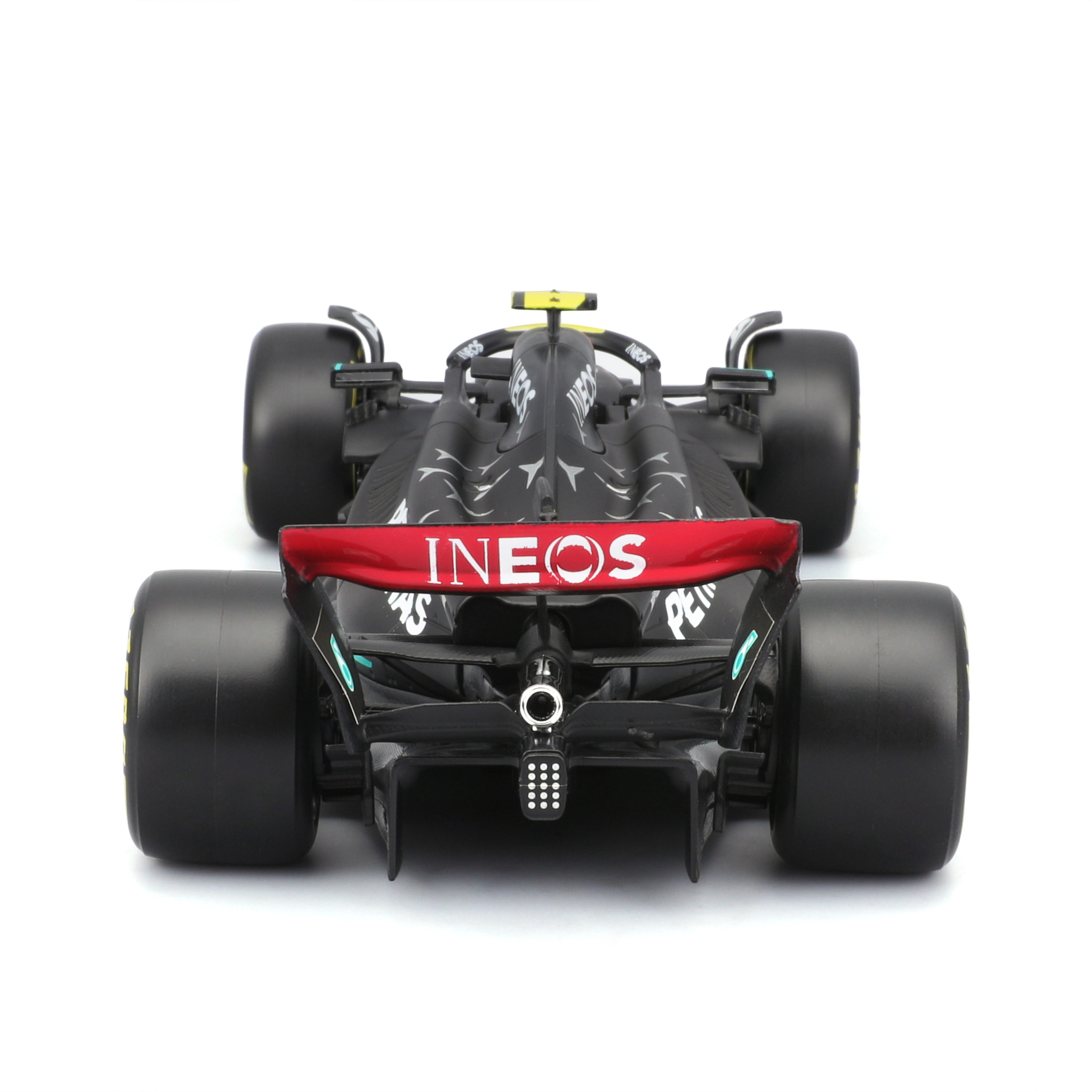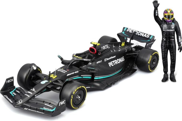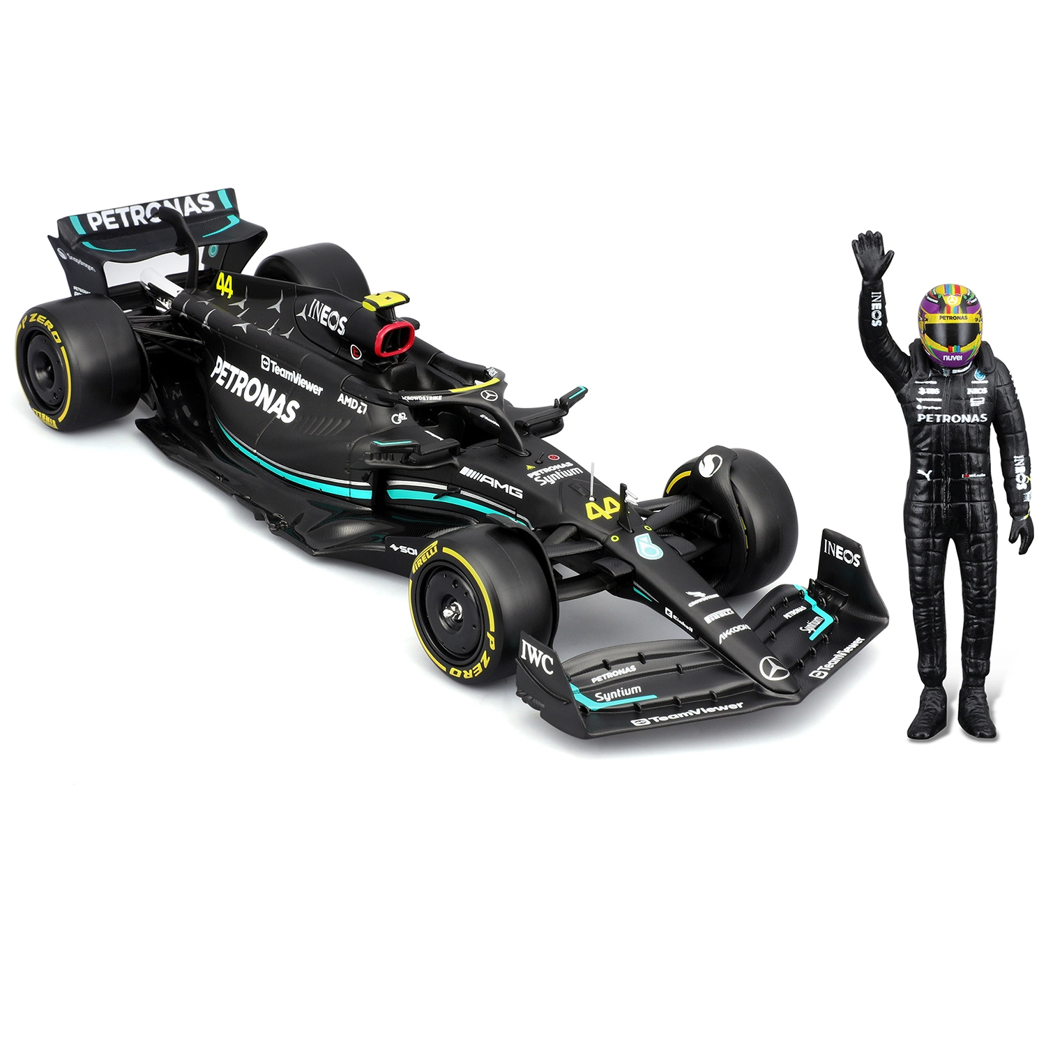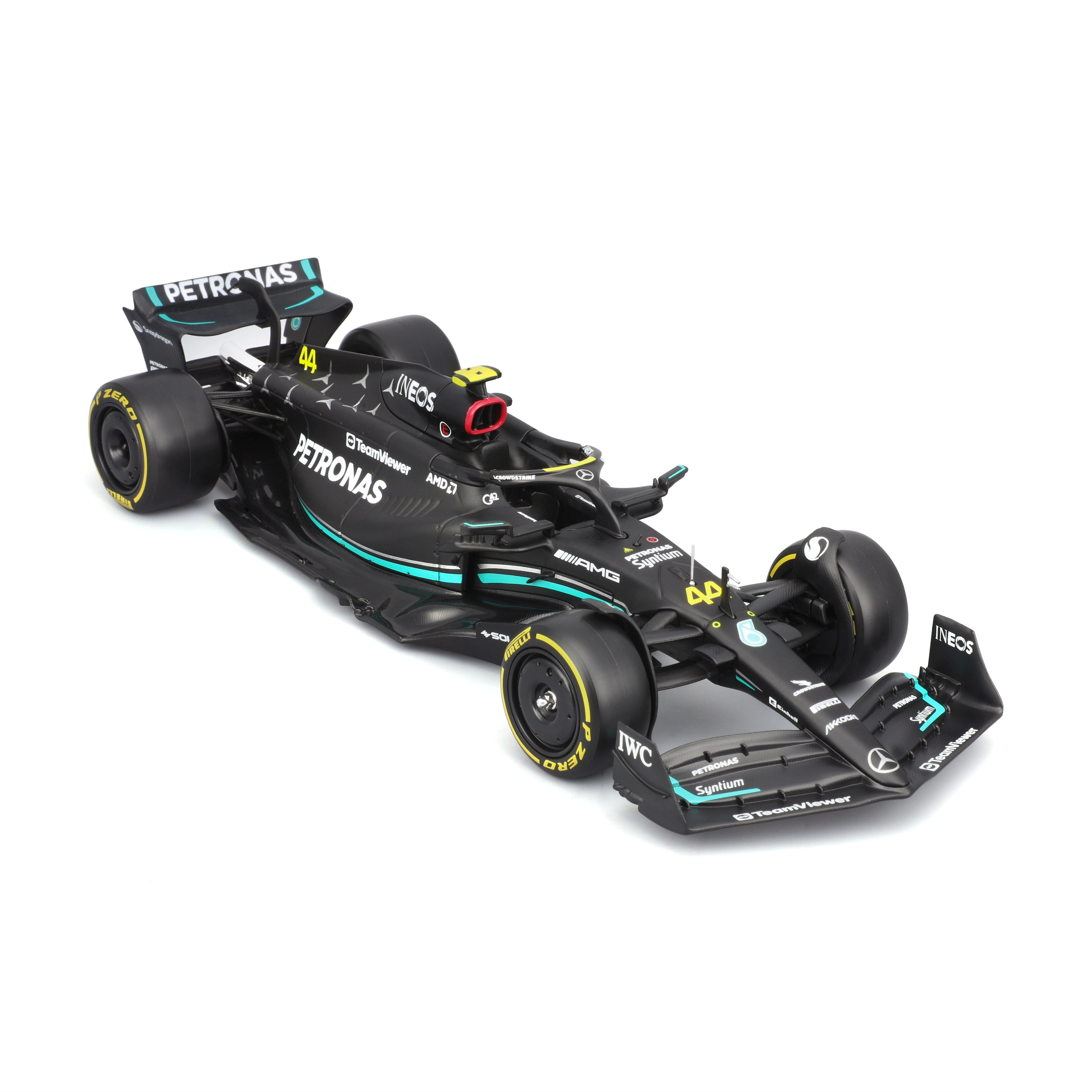 Den detaljerede karrosseriudformning, præcise aerodynamiske elementer og den autentiske PETRONAS-farvekombination fremhæver dette monoposts racer-DNA.