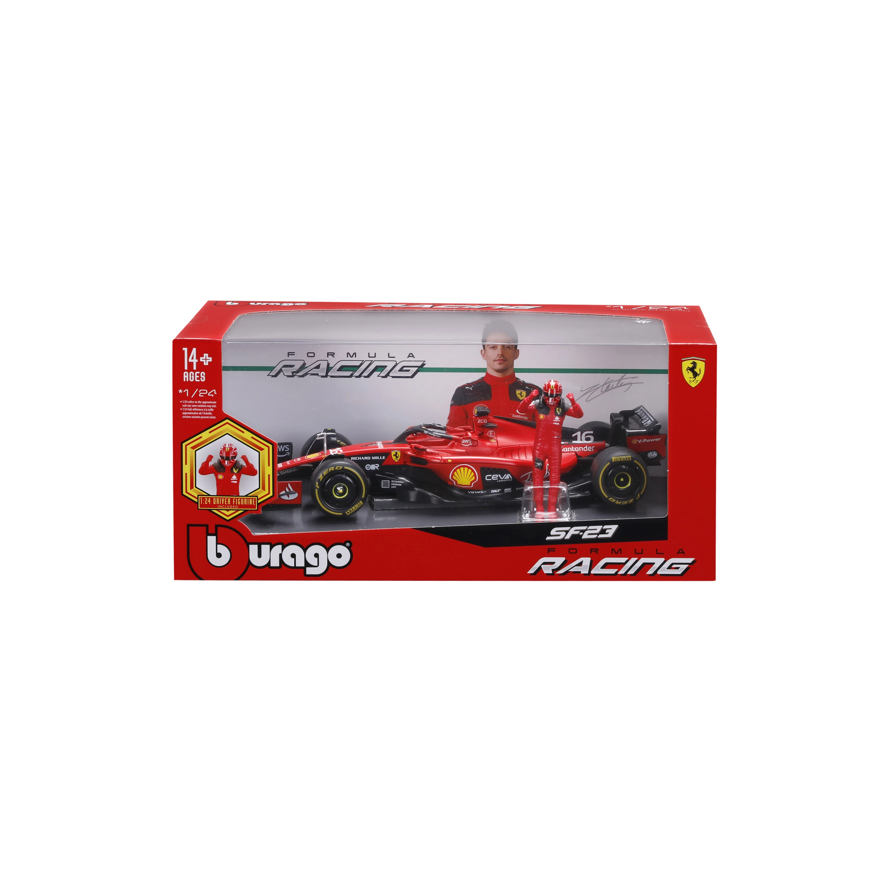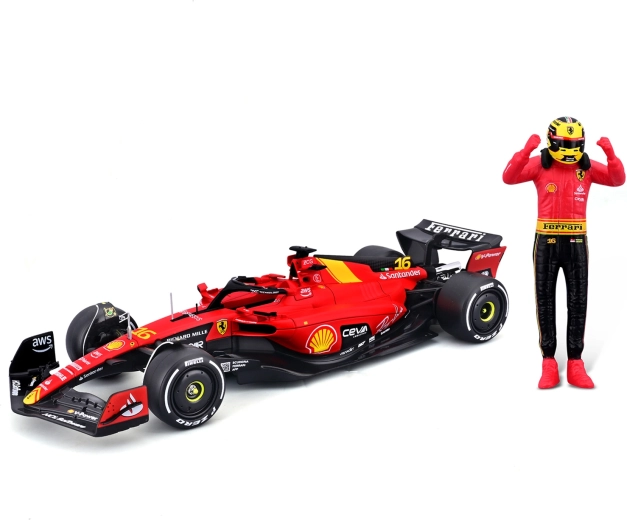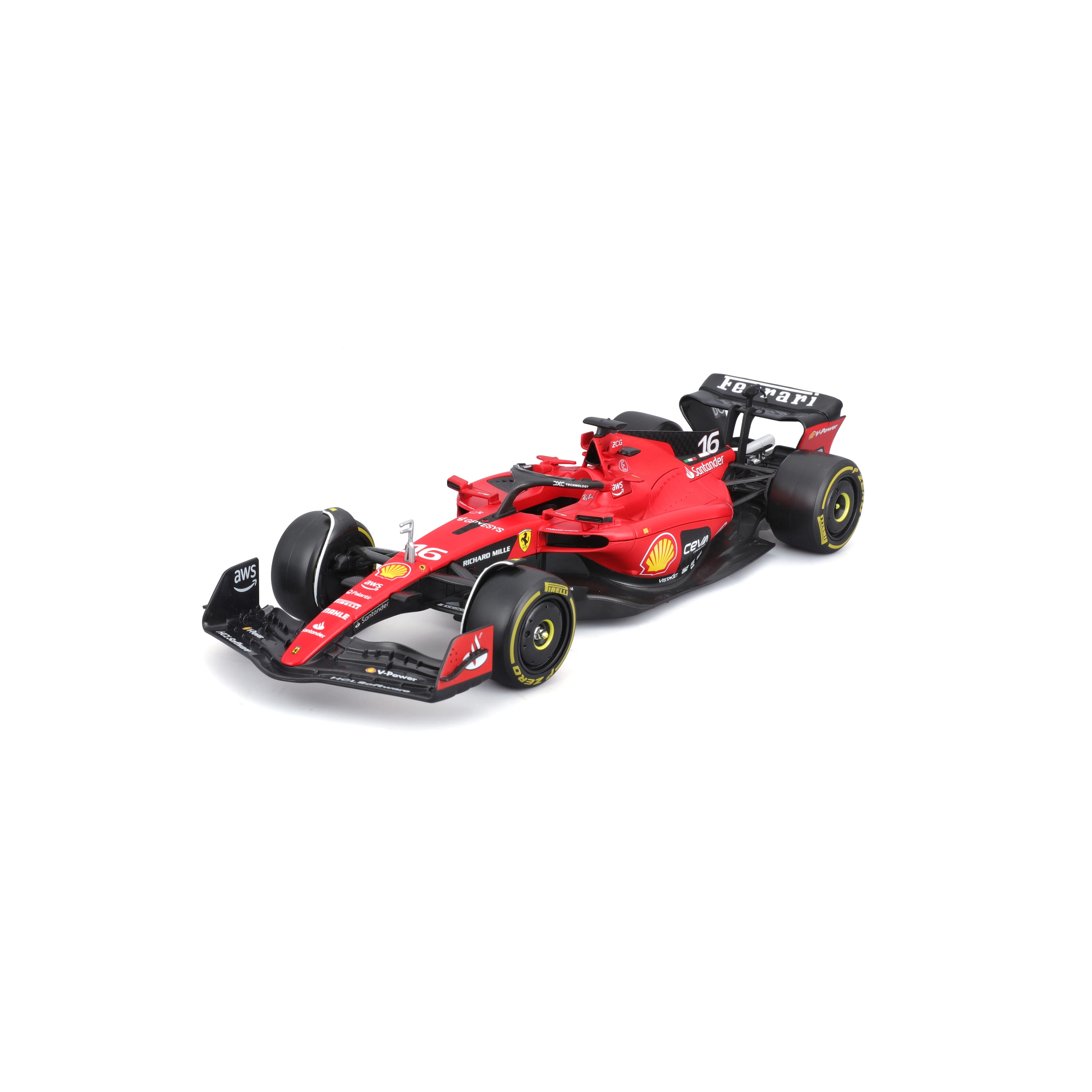 Oplev atmosfæren fra motorsportens kongeklasse med den præcist udførte model af Ferrari SF23 (2023). Metallisk karrosseri med fine linjer, aerodynamiske elementer, for- og bagvinge, halo-bøjle samt autentiske sponsordekorationer gør dette stykke til et perfekt supplement til enhver samling.