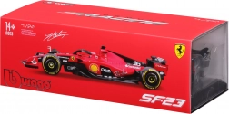Denne præcist udførte model af Ferrari SF-23 fra sæsonen 2023 fanger de karakteristiske aerodynamiske elementer på en moderne Formel 1-bil: for- og bagvinge, halo-cockpitbeskyttelse, realistiske slick-dæk og autentiske team- og sponsorlogoer. Takket være skala 1:24 fremhæves proportioner og fine karrosseridetaljer.