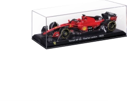 Modellen er anbragt i en hard case-vitrine med sokkel og beskrivelsen “Ferrari SF-23 – Charles Leclerc – 2023”, så den er klar til øjeblikkelig udstilling på hylde eller i vitrine uden yderligere vedligeholdelse. Ideel gave til fans af F1, modelsamlere og tilhængere af Scuderia Ferrari.