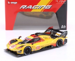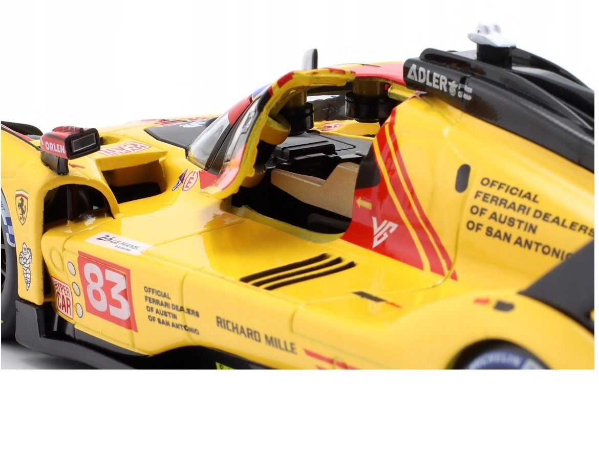 Denne samlermodel Bburago Ferrari 499P LMH i skala 1:24 gengiver trofast formerne og det racerprægede udtryk fra Hypercar-klassen. Den gule bemaling og mærkaterne fra 24h Le Mans 2024 med startnummer 83 giver modellen et autentisk look, der skiller sig ud i vitrinen eller på skrivebordet.