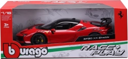Denne røde model af Ferrari SF90 XX Stradale fra Bburago i skala 1:18 byder på førsteklasses udførelse af både eksteriør og interiør. Her finder du åbne aerodynamiske elementer, en markant vinge, præcist formede forlygter og autentiske cockpitdetaljer inklusive sportssæder.