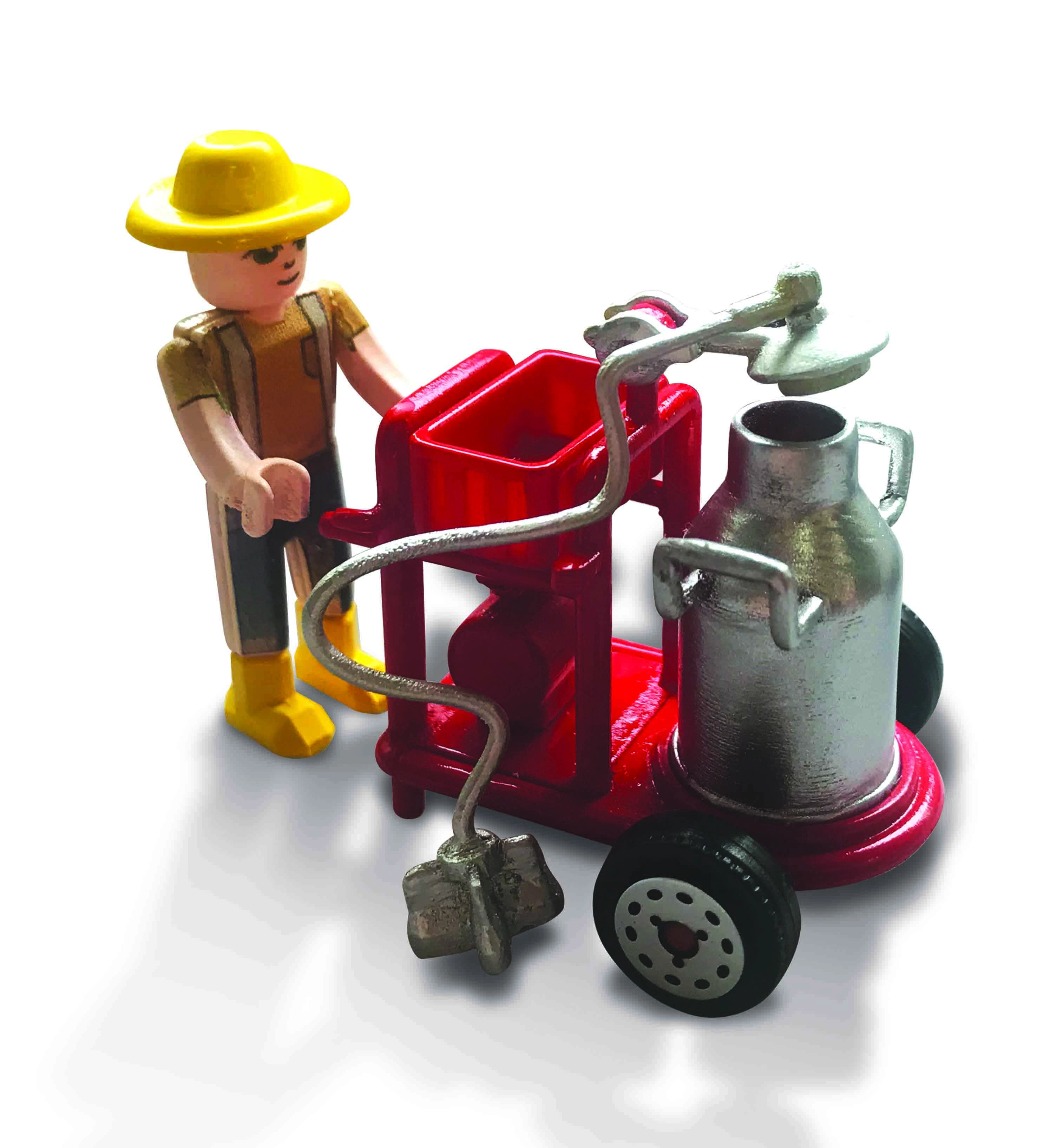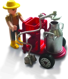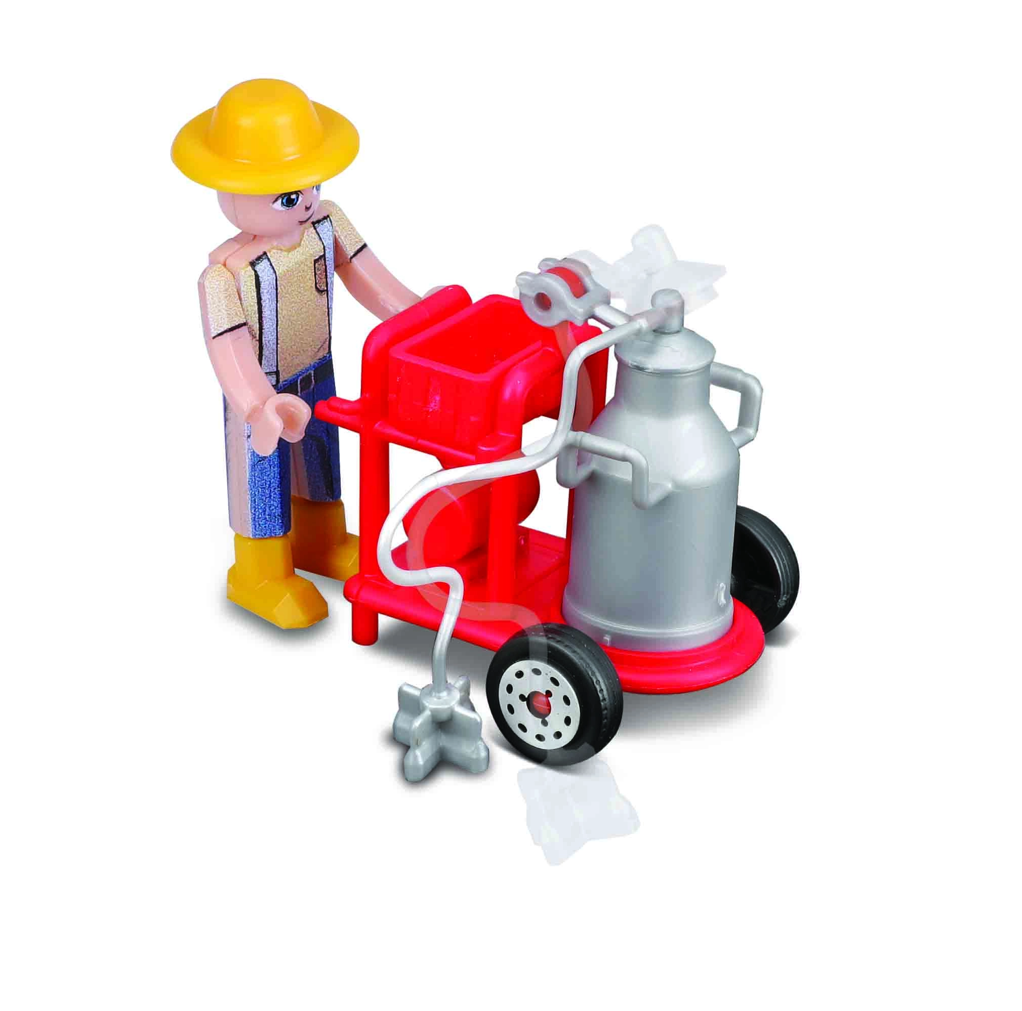 En landmand med mobil malkemaskine og slanger giver en autentisk landbrugsrutine. Vognen er let at manøvrere og udvider lege-mulighederne.