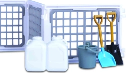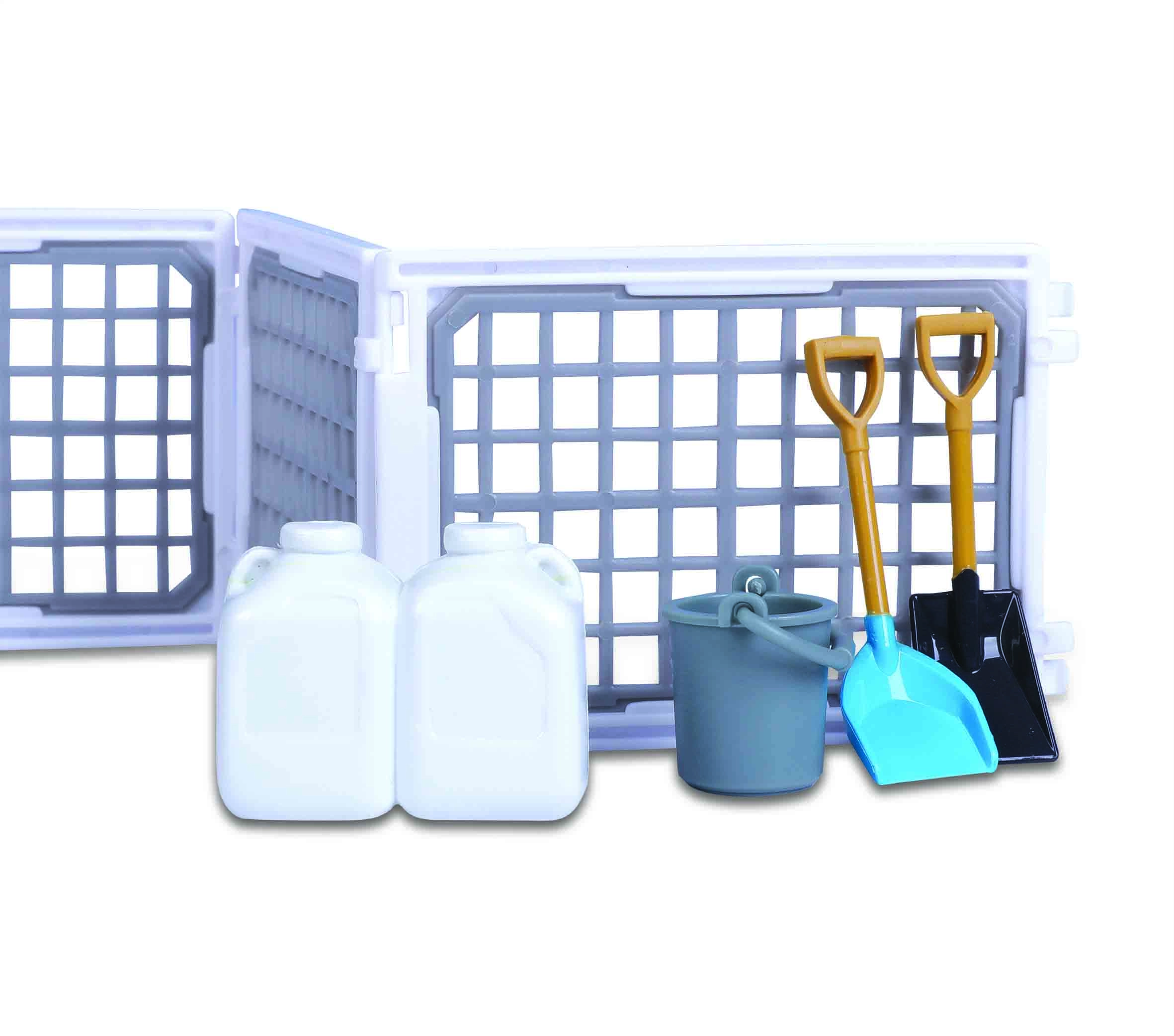 Skovle, river, spande og dunke hjælper med vedligeholdelse af indhegningen. Børn kan prøve fodring, rengøring og pleje af kvæg som på en rigtig gård.