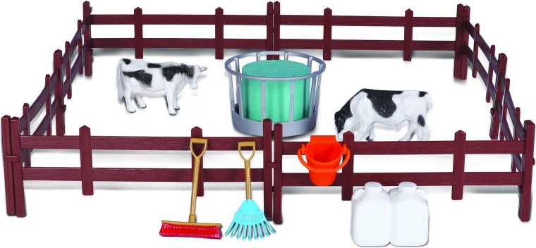 Der medfølger også en mobil vogn med malkemaskine og en landmandsfigur, som tilfører endnu mere realisme til den daglige gårdrutine. Børn udvikler finmotorik, fantasi og ansvarsfølelse, når de passer husdyrene. Den robuste plastkvalitet og holdbare dele sikrer lang levetid og sikker leg.