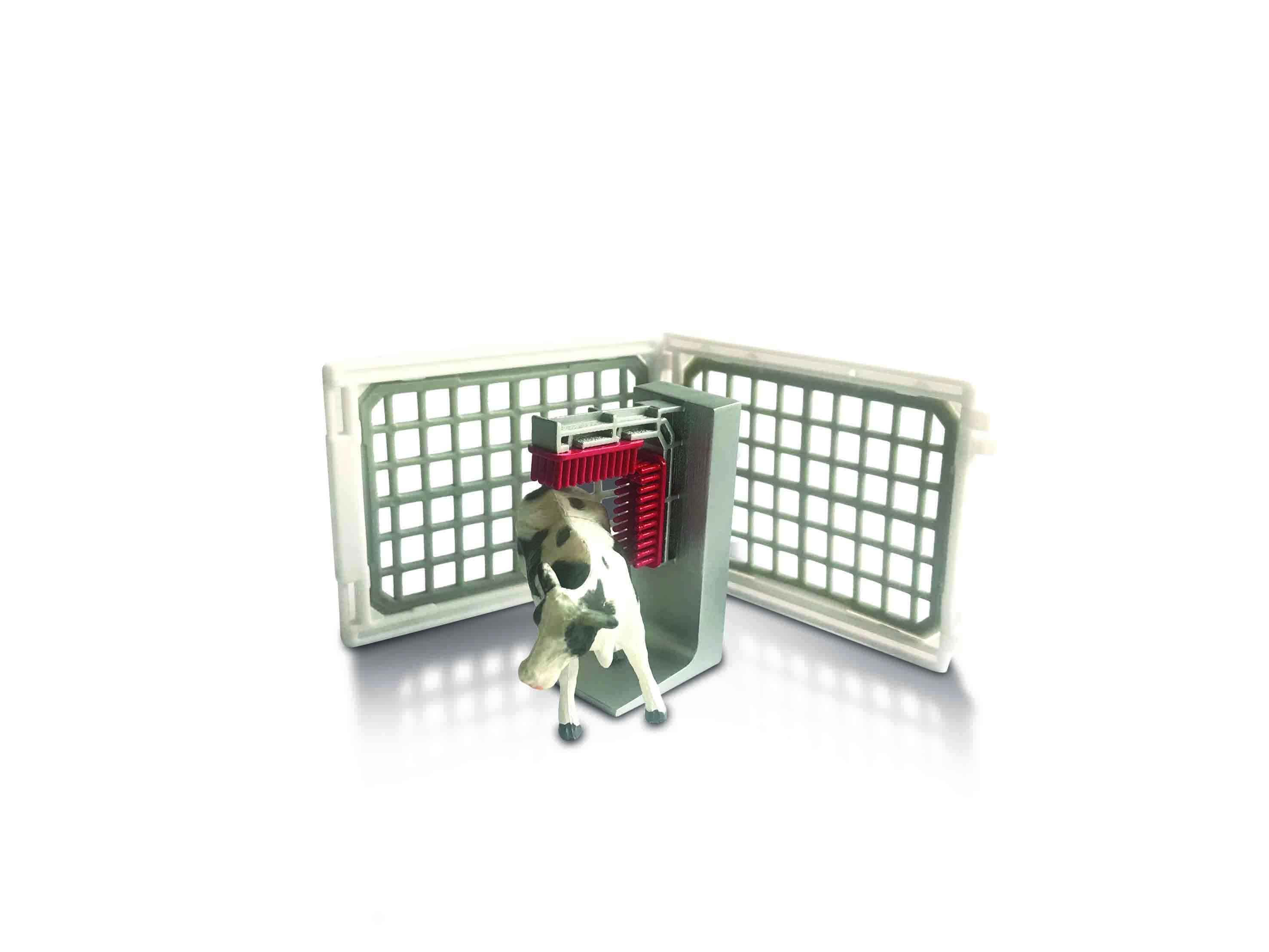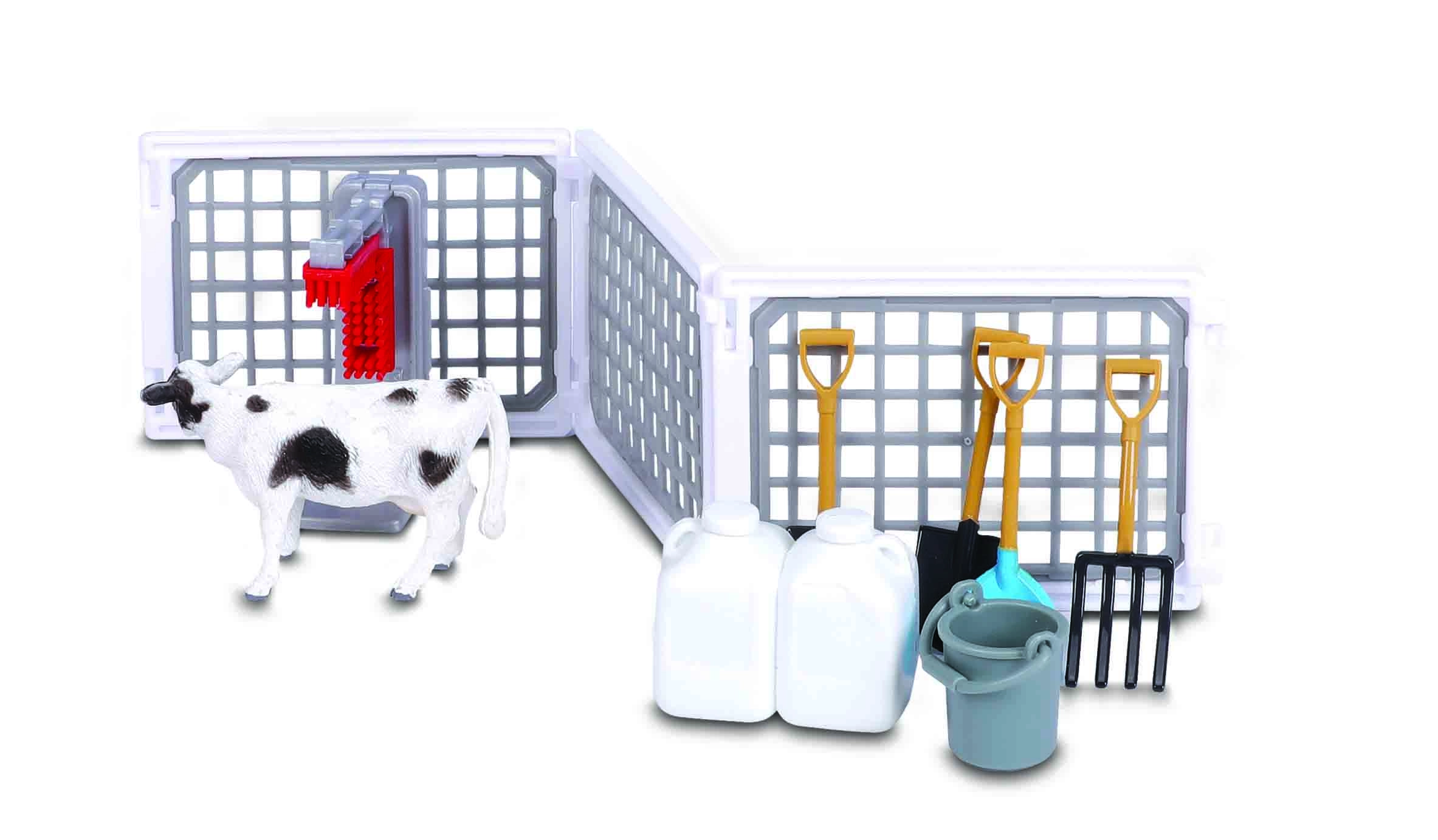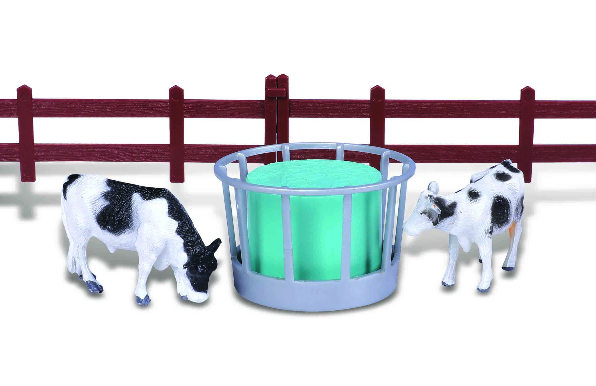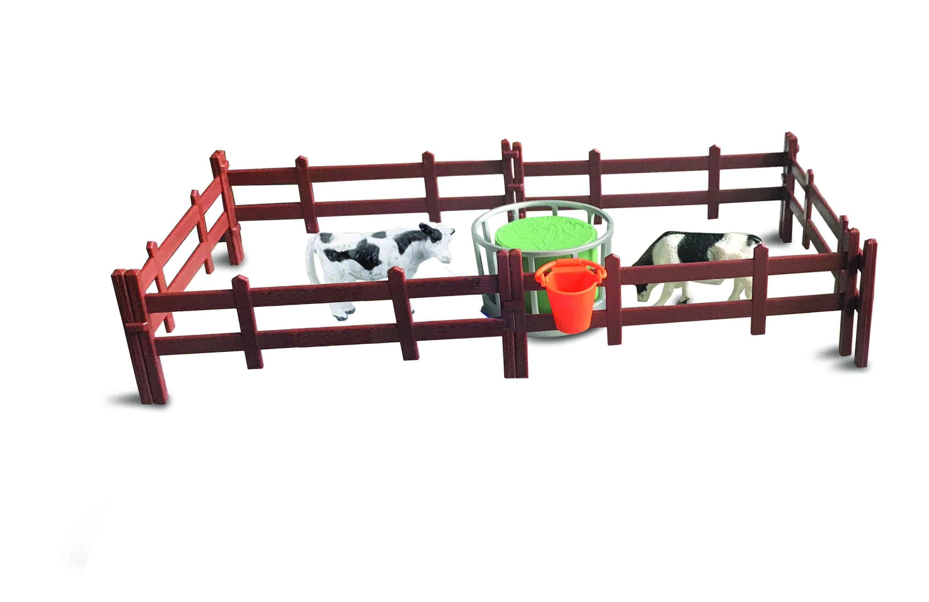 Byg en fold efter dine egne idéer, og tag dig af køerne ved det runde foderstativ. Ideelt til at øve dyrepleje og udvikle fantasien.