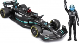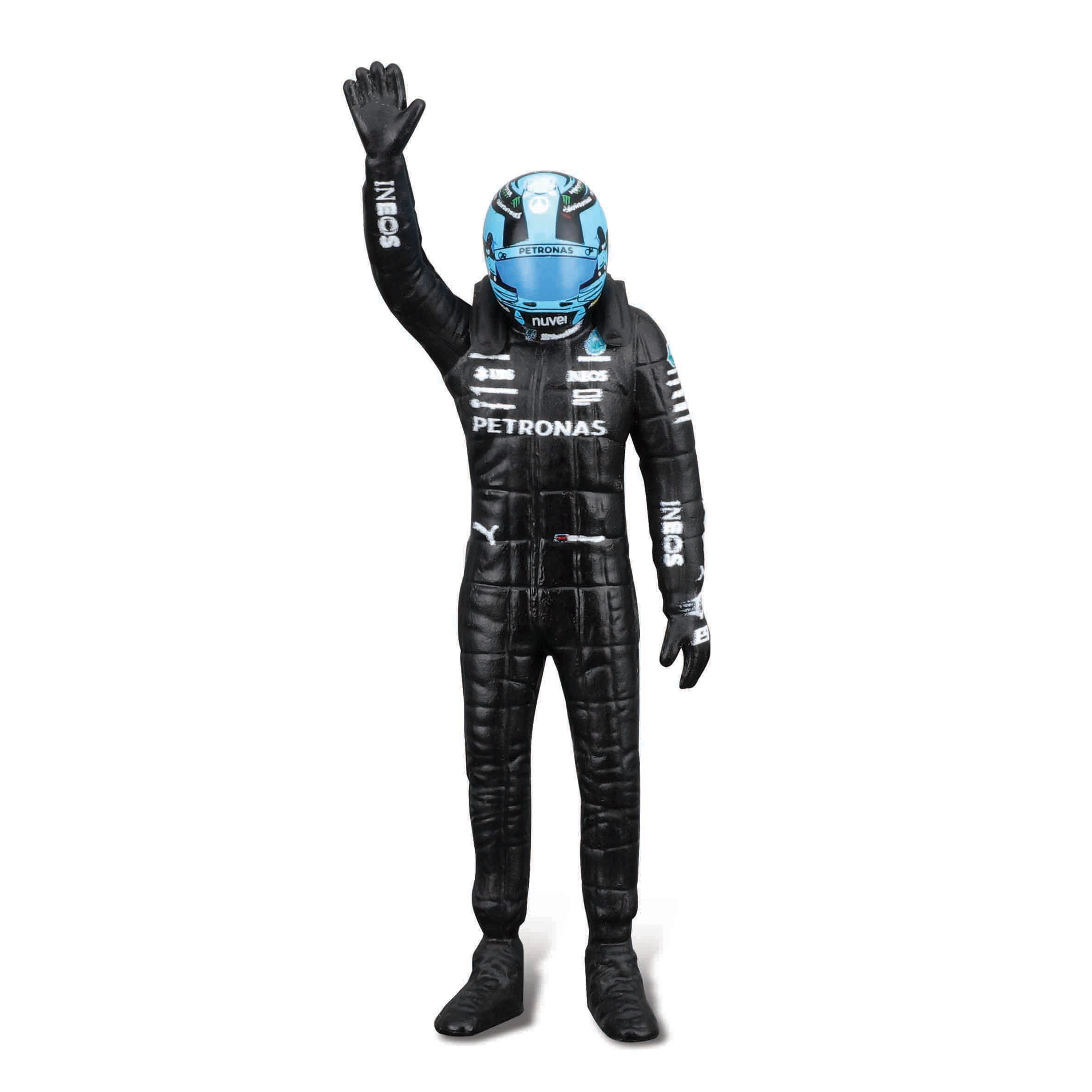 Der medfølger en dekorativ figur af køreren George Russell samt høj kvalitet i livery‑tryk med sponsorer, som understreger troværdigheden til originalen. Modellen er ideel til display, vitrineskab og som gave til F1‑fans.
