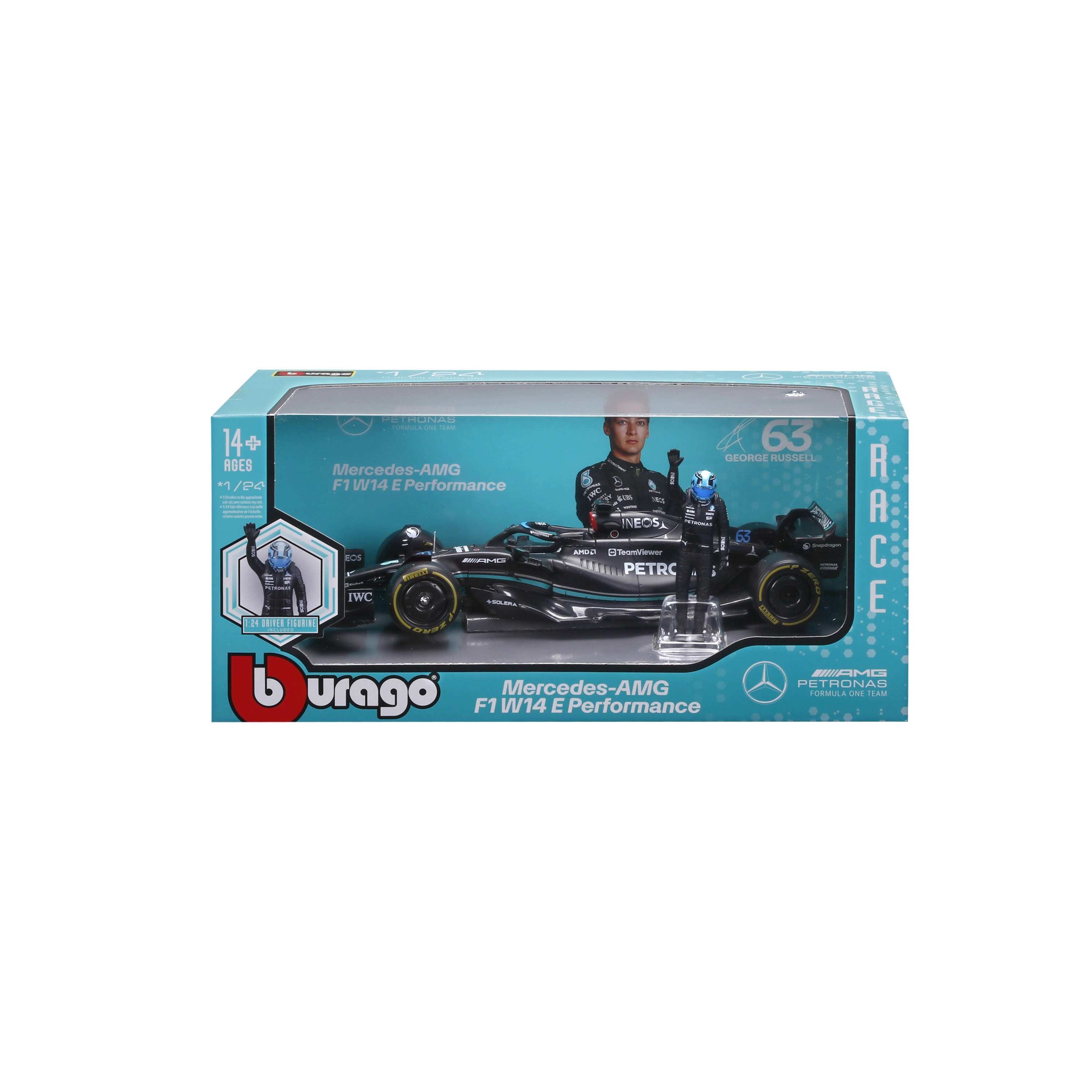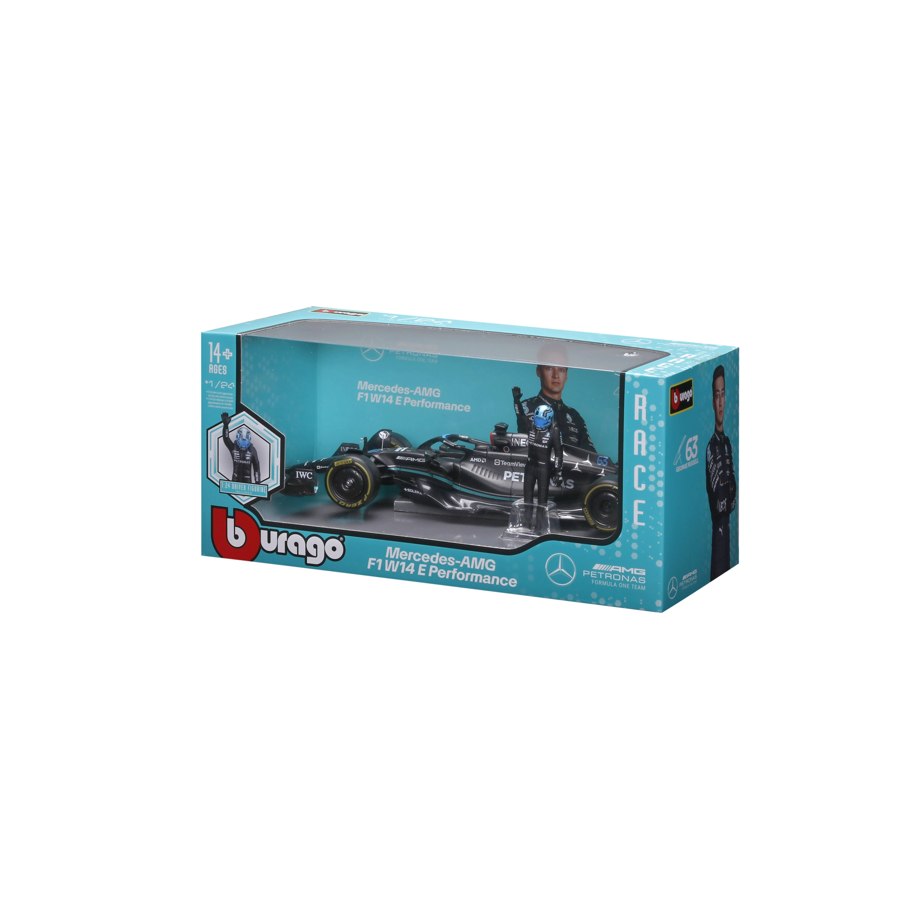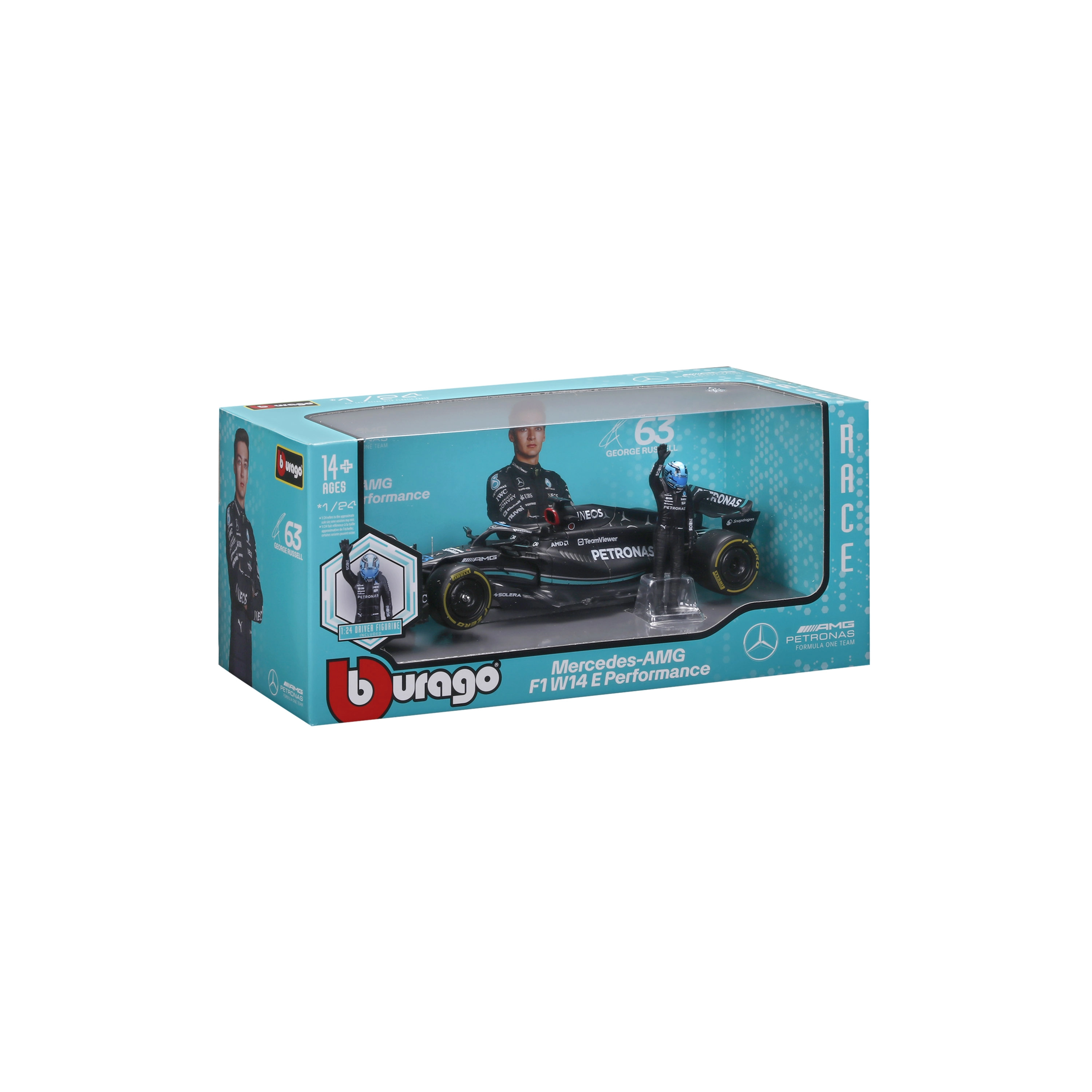 Berig din samling med den ikoniske single-seater fra sæsonen 2023 – MERCEDES‑AMG F1 W14 E i PETRONAS‑farver. Denne licenserede replika fra Bburago i skala 1:24 udmærker sig ved nøjagtige proportioner, autentisk lak, realistiske slicks og fine karrosseridetaljer inklusive halo og vinger.