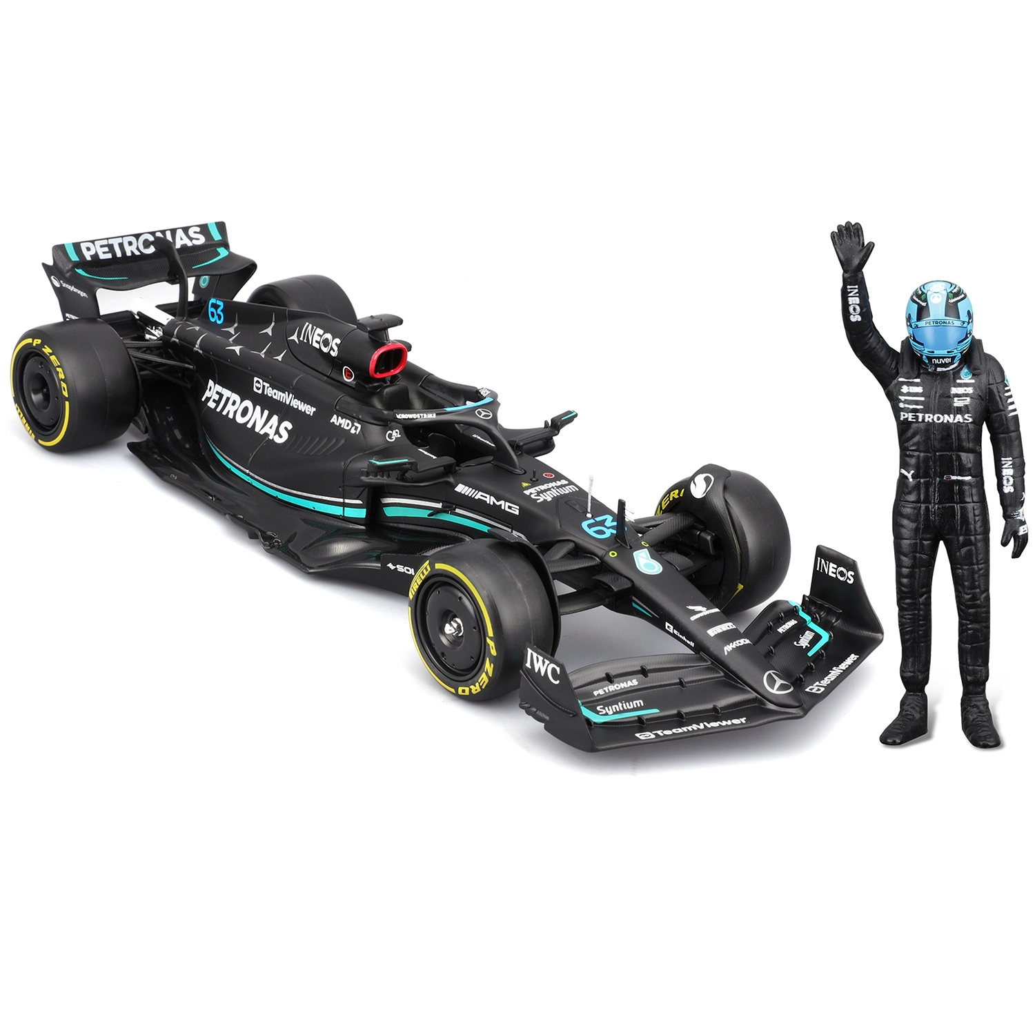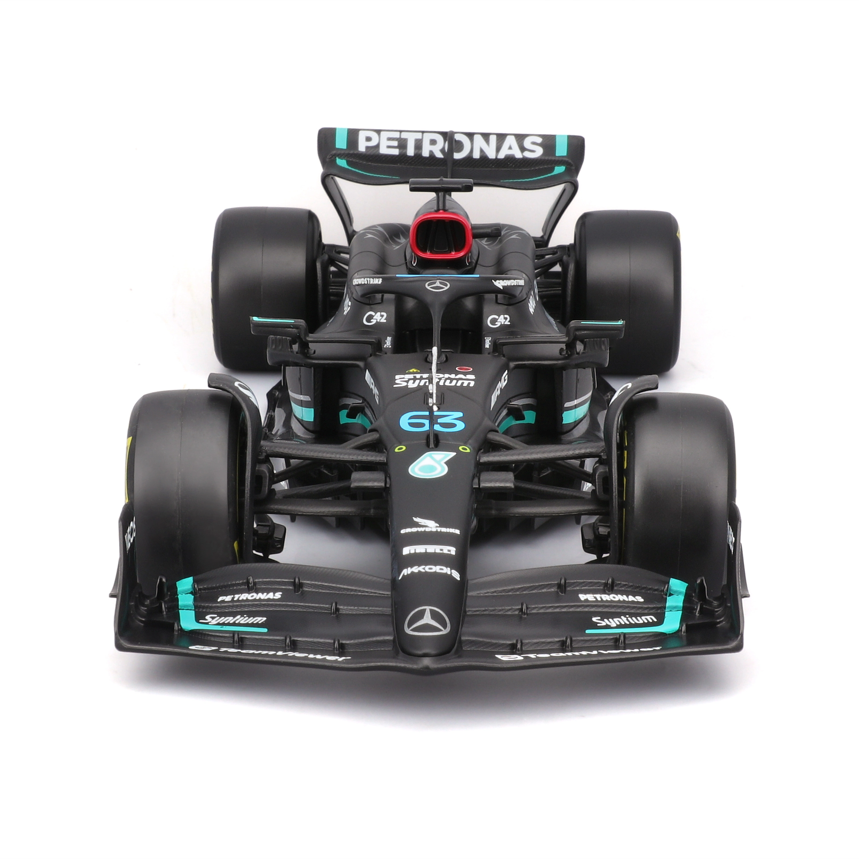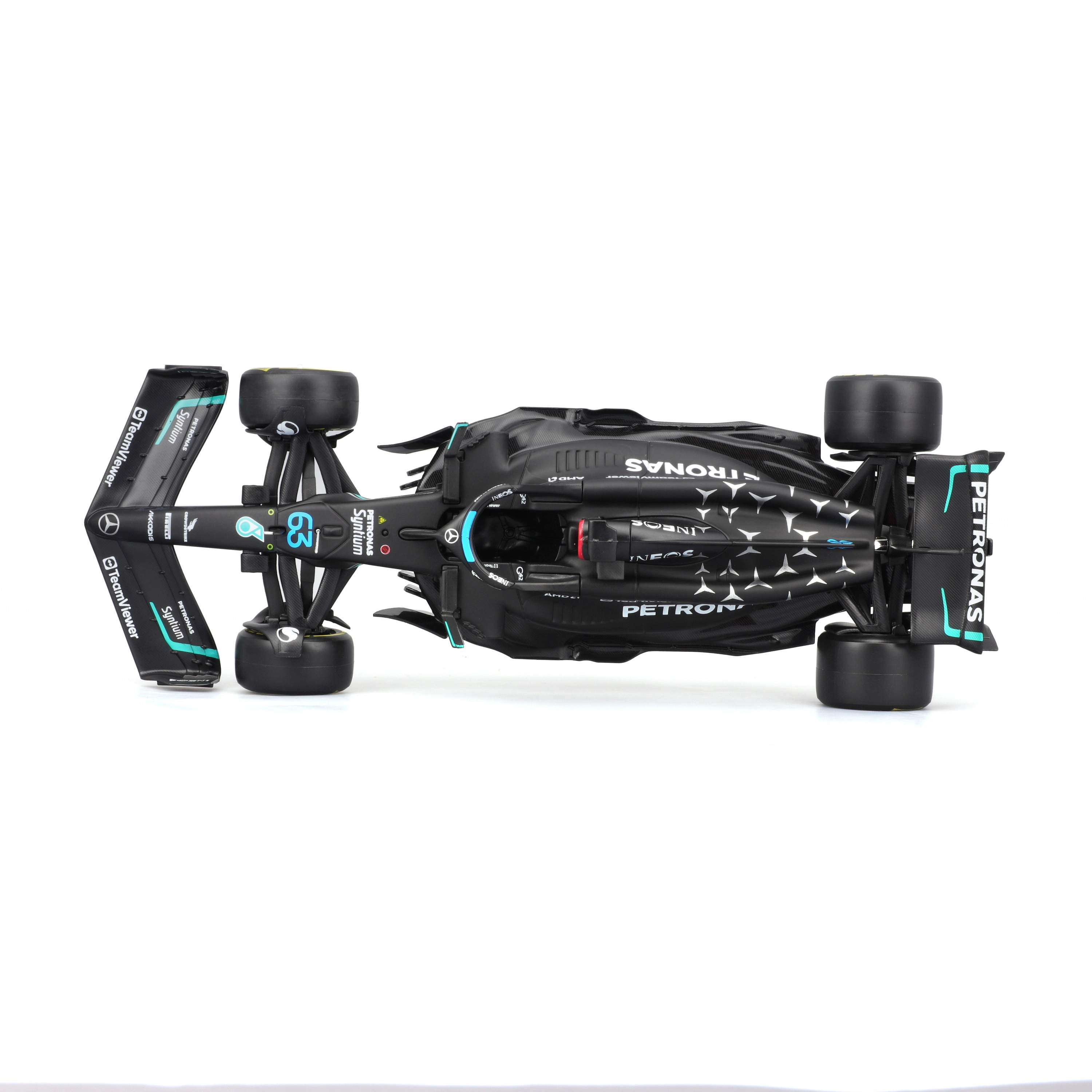 Realistisk aerodynamik, præcis vingekontur og førsteklasses sponsortryk efterligner trofast den rigtige W14 E single-seater.