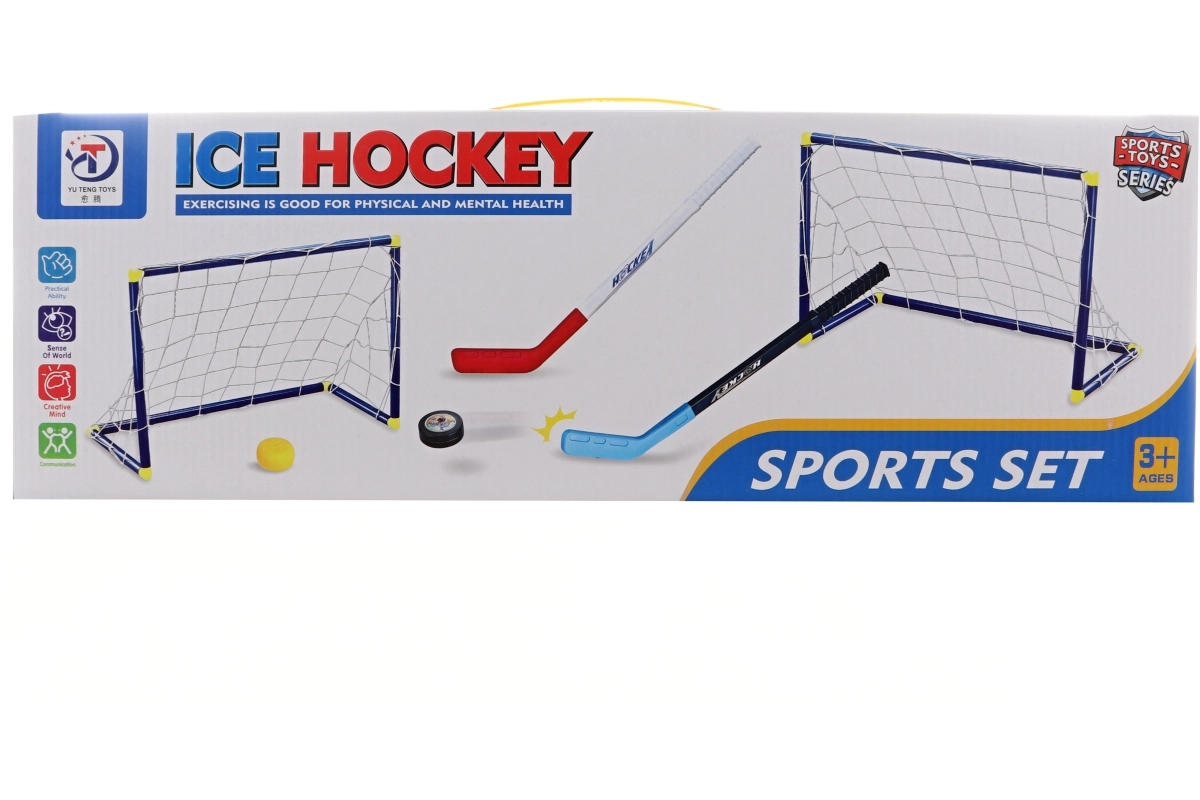 Komplet sæt til små hockeyspillere indeholder 2 mål, 2 stave og puck – ideelt til sjov både inde og ude. Let plastmateriale med net sikrer nem transport og hurtig montering. Perfekt til børn fra 3 år til udvikling af koordination og holdspil.