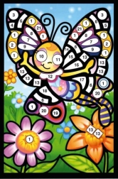 Glitrende klistermærkebillede bringer sjov og kreativ aktivitet til dine børn. Med trykte tal kan børn let placere de glitrende klistermærker og skabe et smukt farverigt billede.