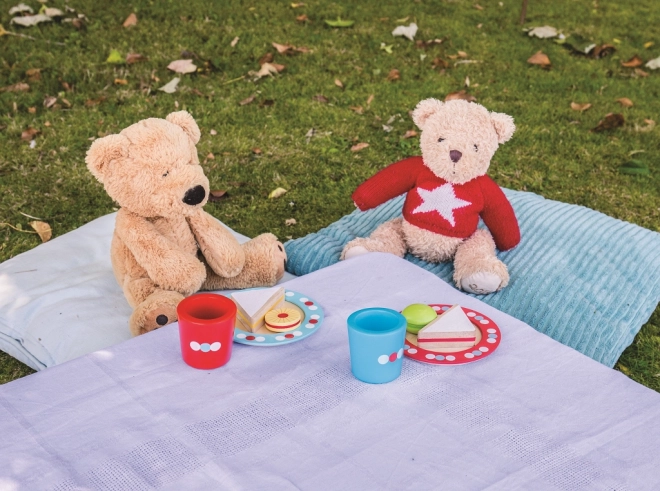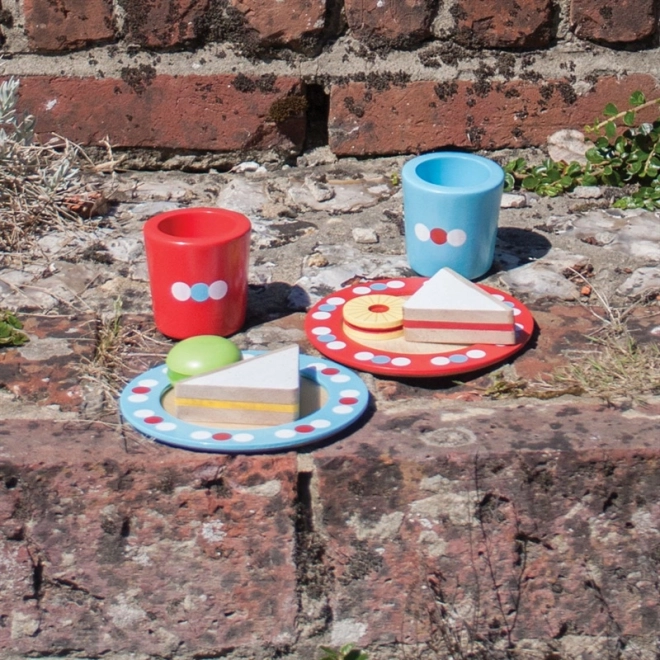 Dette charmerende trætesæt med prikker inviterer til et fælles “fem-o-tea”. Børn kan øve sig i at servere, være høflige og dele, samtidig med at de træner greb og håndkoordination. Farverige detaljer og gennemtænkte mål gør det til et populært tilbehør i ethvert legekøkken.