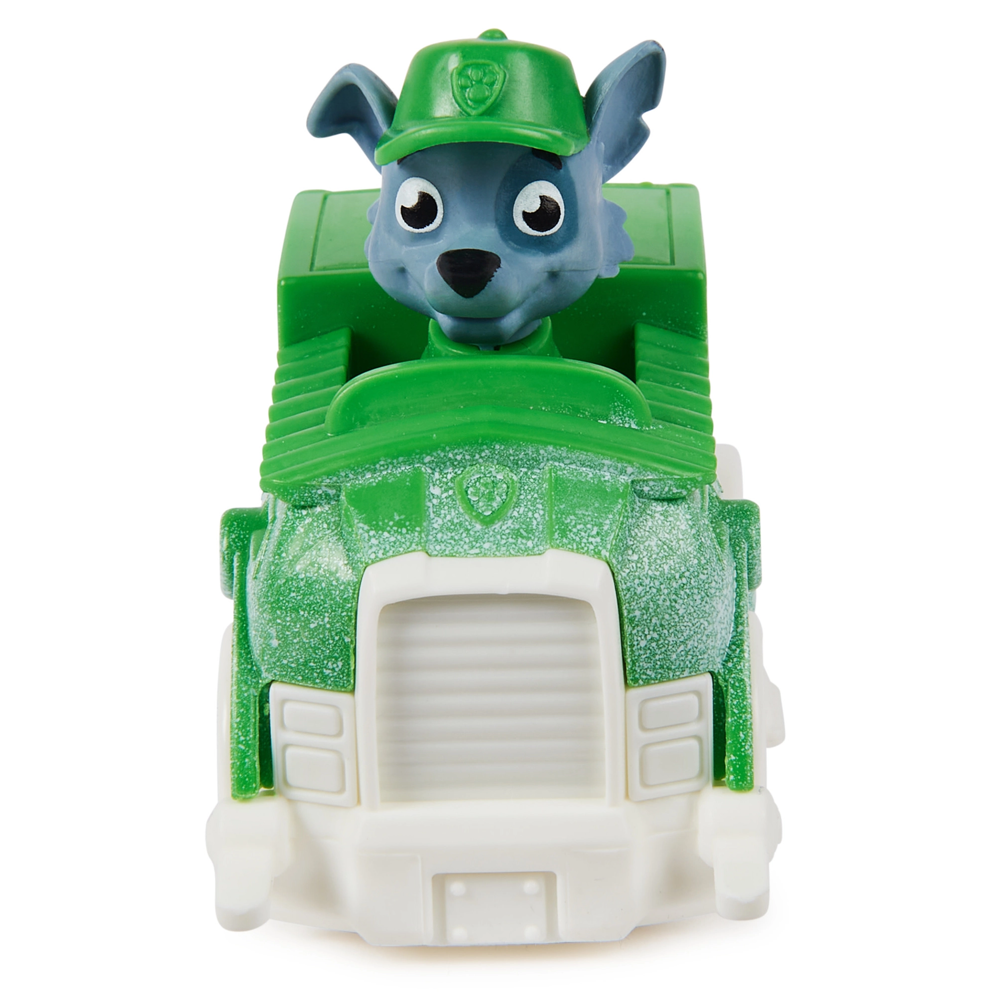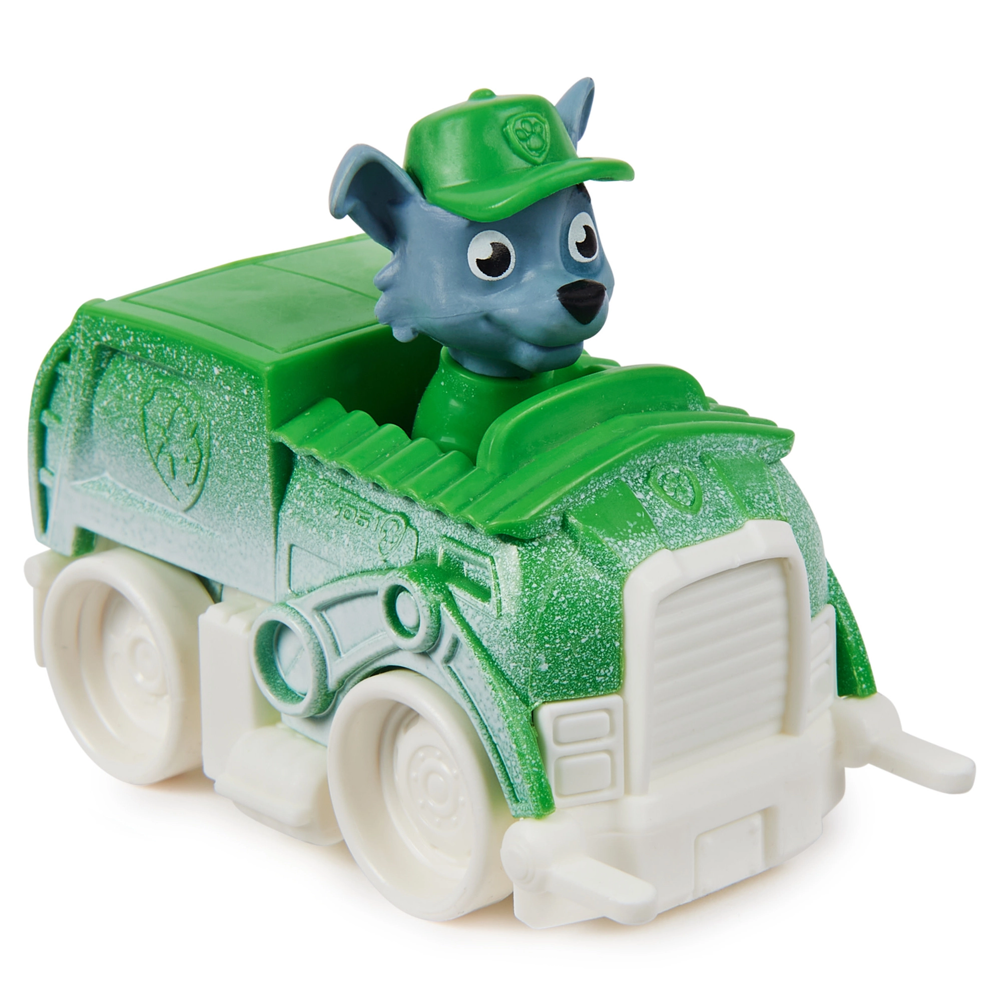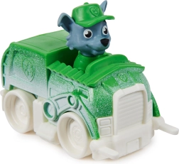 Denne kompakte Rocky-vogn fra PAW Patrol-serien er ideel til små fans, der elsker vintereventyr. Den grønne genbrugstruck med sneeffekt bringer autentiske detaljer, inklusive forgaffel til håndtering af last og en fastmonteret Rocky-figur med hjelm. Legetøjet er designet til push-along-kørsel – skub let, og så er den klar til action.