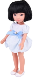 Den elegante dukke Lovely Girl vil glæde ethvert barn. Hun har kort sort hår, realistiske træk og bevægelige lemmer for nem posering. Hun kan have på en festlig hvid‑blå kjole med sløjfe og perledetalje og hvide ballerinasko. Perfekt til rolleleg, påklædning og udvikling af fantasi og empati.