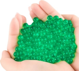 Takket være den ikke‑giftige og absorberende polymer er perlerne lette, elastiske og behageligt bløde ved kontakt. Den klare grønne farve giver bedre overblik under dynamisk leg, og den kompakte pakke passer nemt i taske eller skuffe.