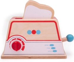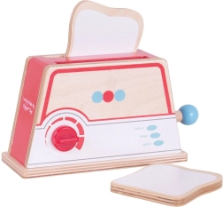 Børn indstiller ”bruningen” med den roterende vælger og starter ristningen med løftestangen. Efter et øjeblik popper toasten op – ideelt til at efterligne den ægte morgenmadsforberedelse.