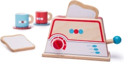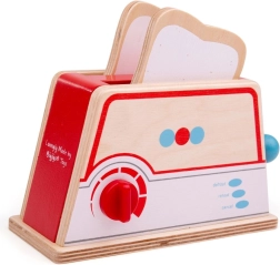 Læg brødskiverne i sprækkerne, indstil den ønskede ”bruning” og tryk på løftestangen – efter et øjeblik popper toasten op som på et rigtigt apparat. Markeringerne defrost, reheat, cancel understøtter efterligning af daglige aktiviteter og udvikler både ordforråd og fantasi.