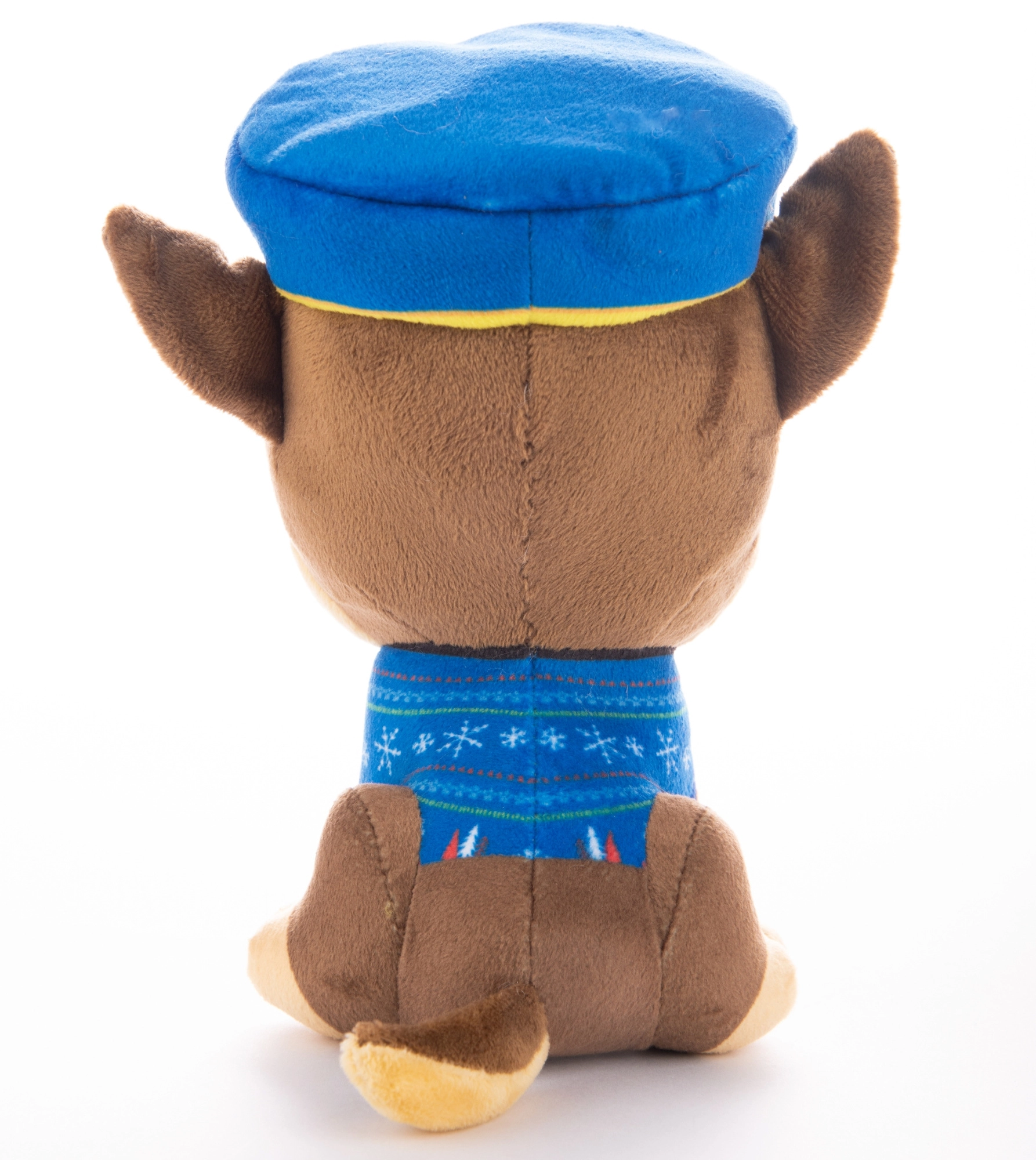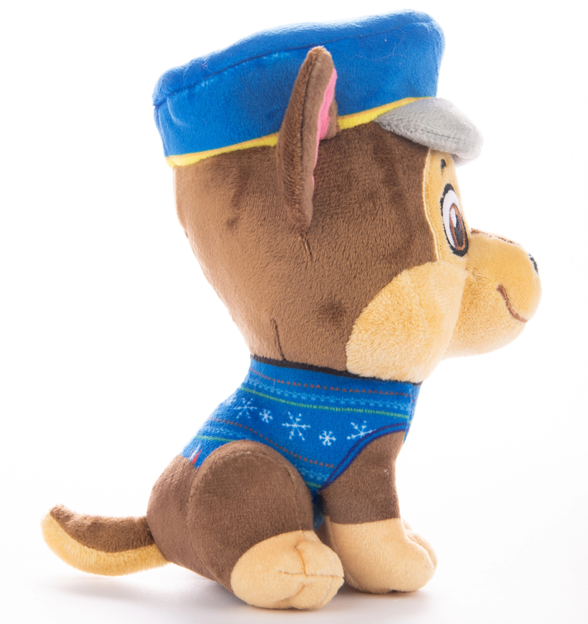 Plysdyr Chase, den populære politihund fra kultserien PAW PATROL, kommer i vinterudgave med blå julesweater med et fint mønster. Takket være den høje kvalitet, de broderede detaljer og den ekstra behagelige overflade vil børn hurtigt elske ham.