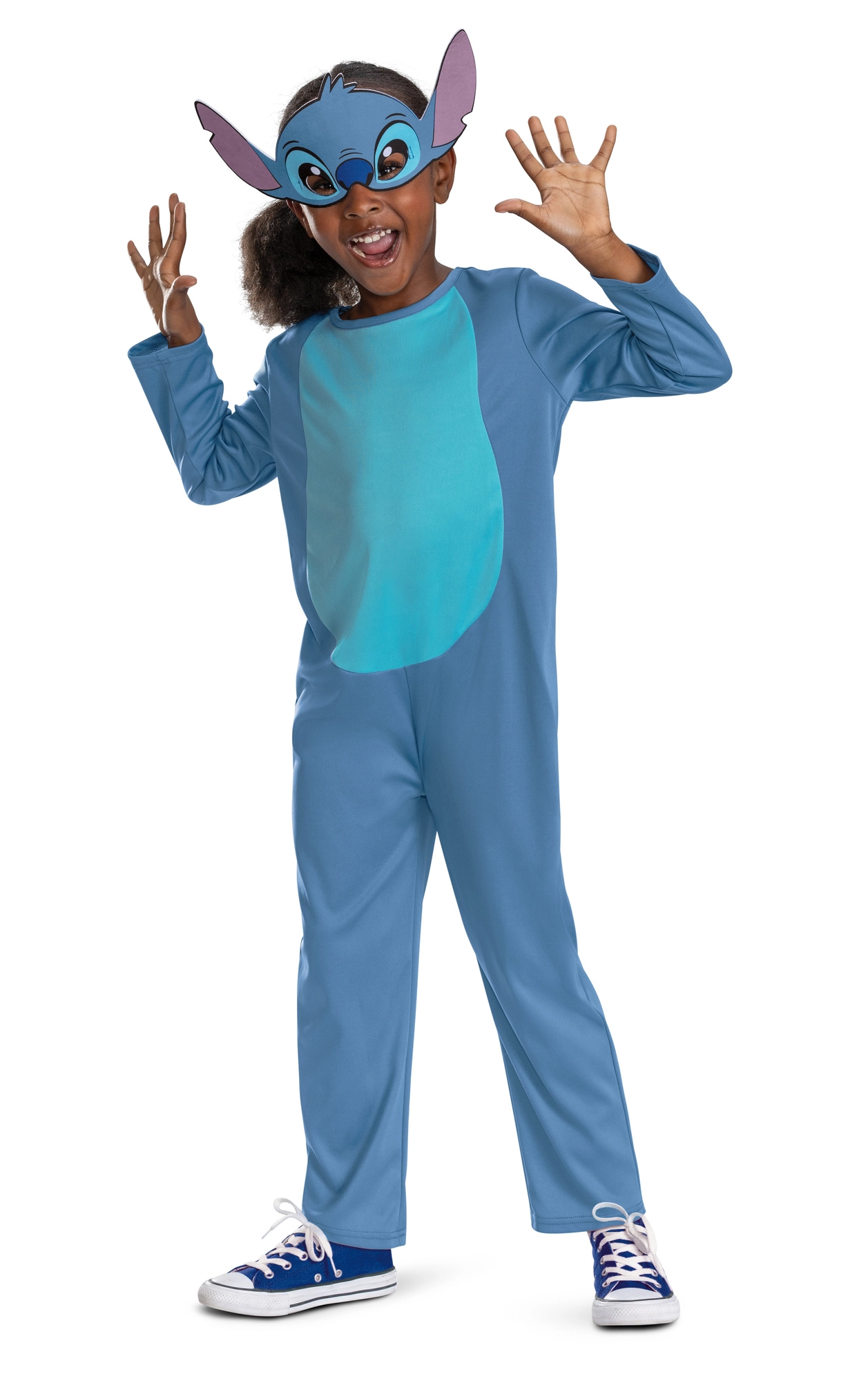 Forvandl dit barn til den populære blå rumvæsen fra Disney Lilo & Stitch. Kostumet inkluderer en heldækkende dragt med lange ærmer og ben samt en behagelig maske med elastik, så udklædningen er komplet på ingen tid. Perfekt til karneval, temafester, fotos og daglig rolleleg.