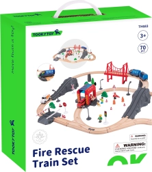 Denne komplette træjernbane fra TOOKY TOY forvandler børneværelset til en actionfyldt redningsby. Børn kan bygge forskellige ruter, køre over broer, gennem tunneler og skabe spændende historier med redningstjenesterne – fra brandindsats til hurtig hjælp fra ambulancen. Det rige tilbehør understøtter fantasi, kreativitet og rolleleg.