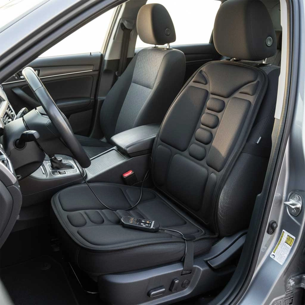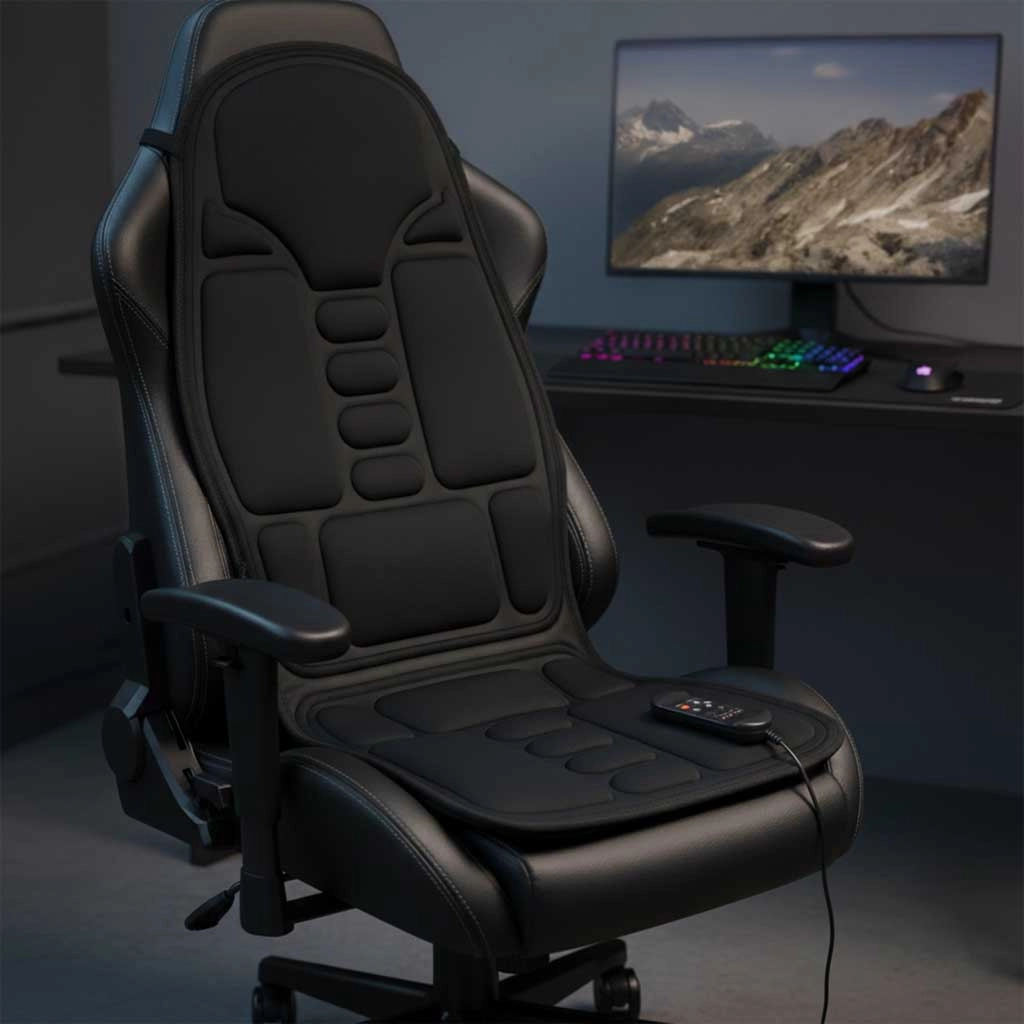 Dette komfortable massageovertæk til sædet giver målrettet vibrationsmassage til ryg og lår og understøtter muskelopvarmning takket være integreret varme. Nem fastgørelse med elastiske stropper sikrer stabilitet på kontorstol, gamerstol og bilsæde.