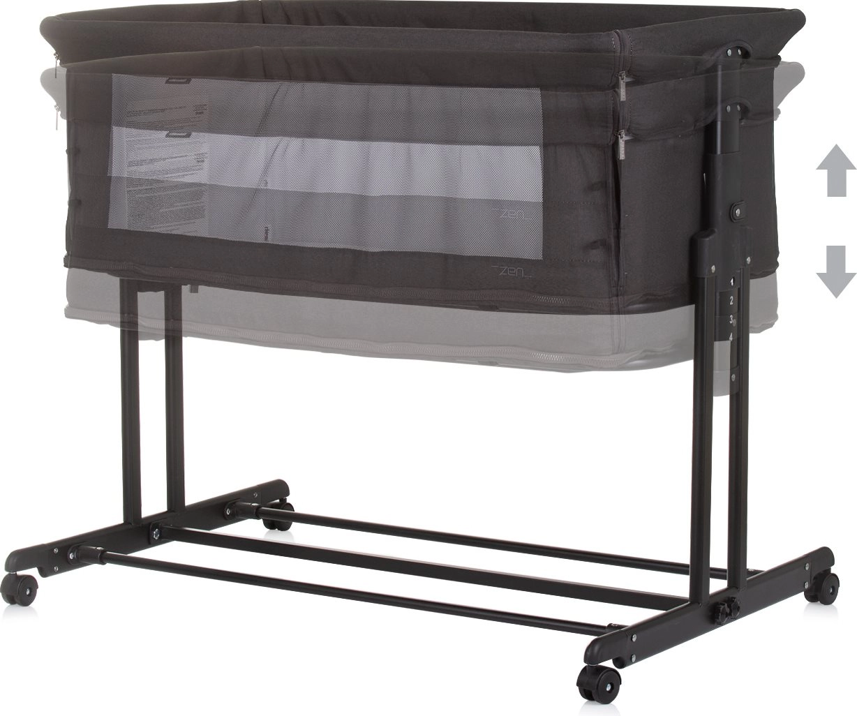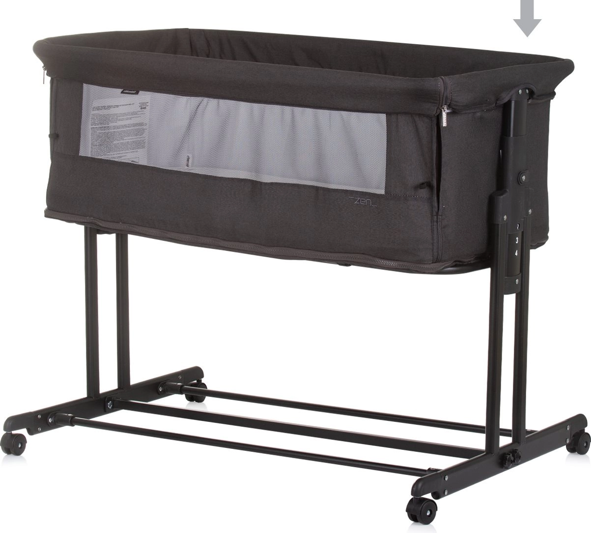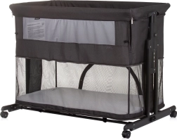 CHIPOLINO Zen Obsidian er en praktisk bedside-crib og seng til nyfødte op til 6 måneder (op til 9 kg), som du nemt kan omdanne til en legetræningsgård til børn op til 15 kg. Åndbare net-sider sikrer luftcirkulation og visuel kontakt, mens den lange, nedfældelige side gør det muligt altid at have babyen tæt på.