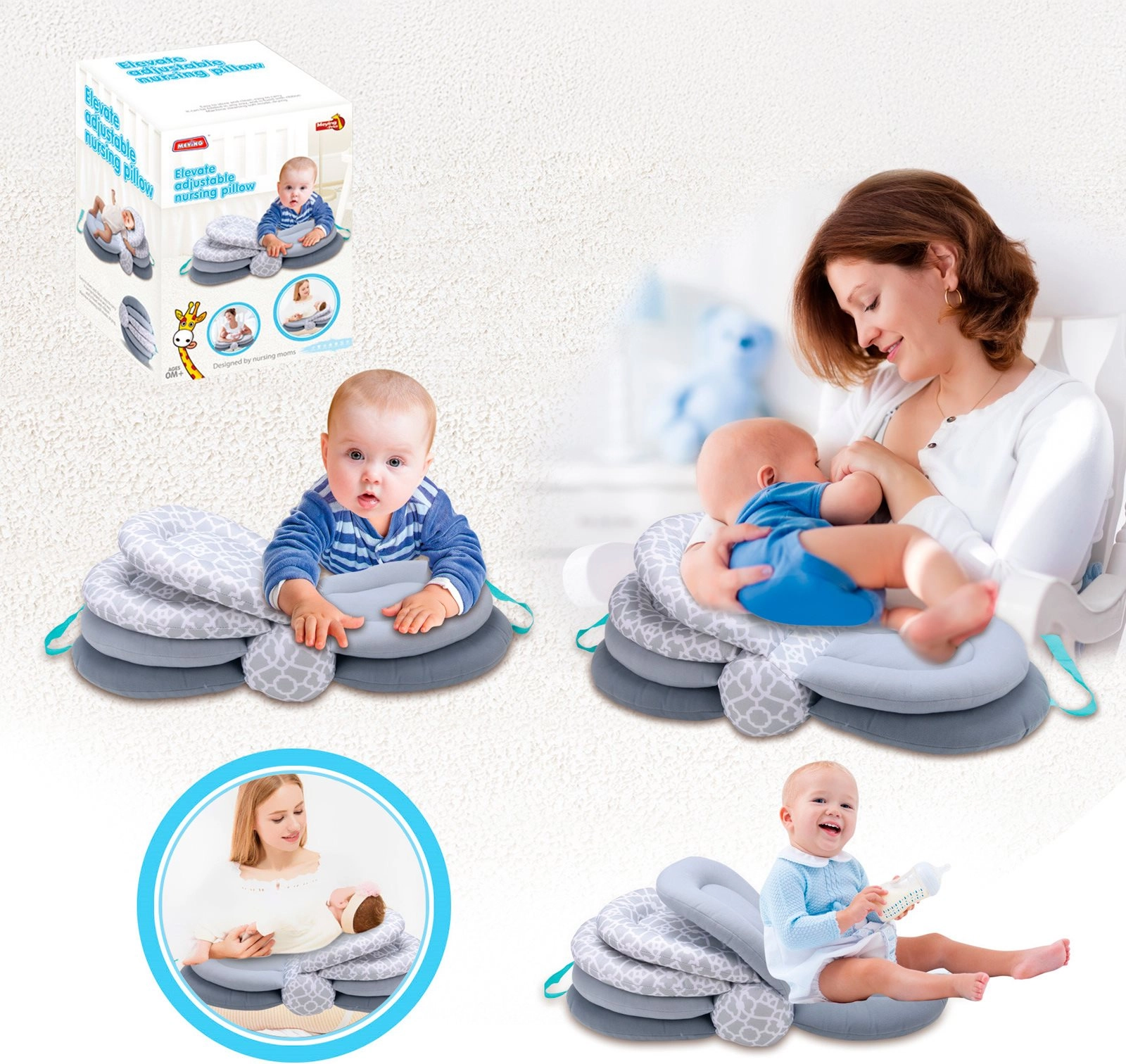 Den multifunktionelle børnepude 3-i-1 fra CHIPOLINO er en ideel hjælper til den daglige pleje af din baby fra første dag. Den ergonomiske form og justerbare højde understøtter korrekt position ved både amning og flaskefodring, hvilket reducerer belastningen på ryg og arme. Takket være den bløde og behagelige overflade giver den maksimal komfort for både baby og mor.