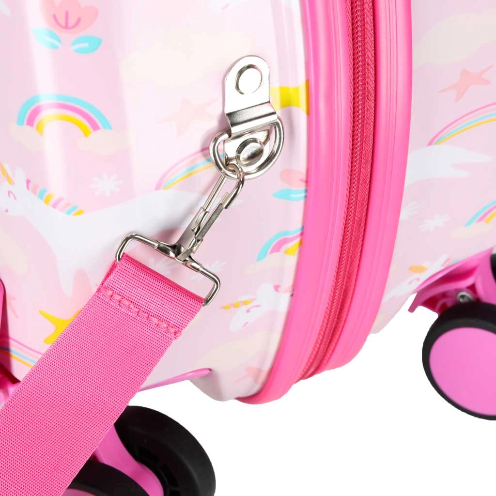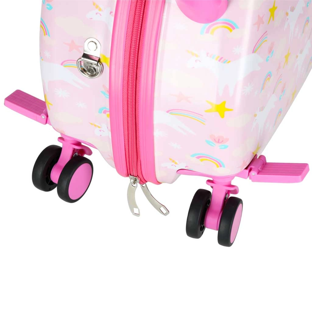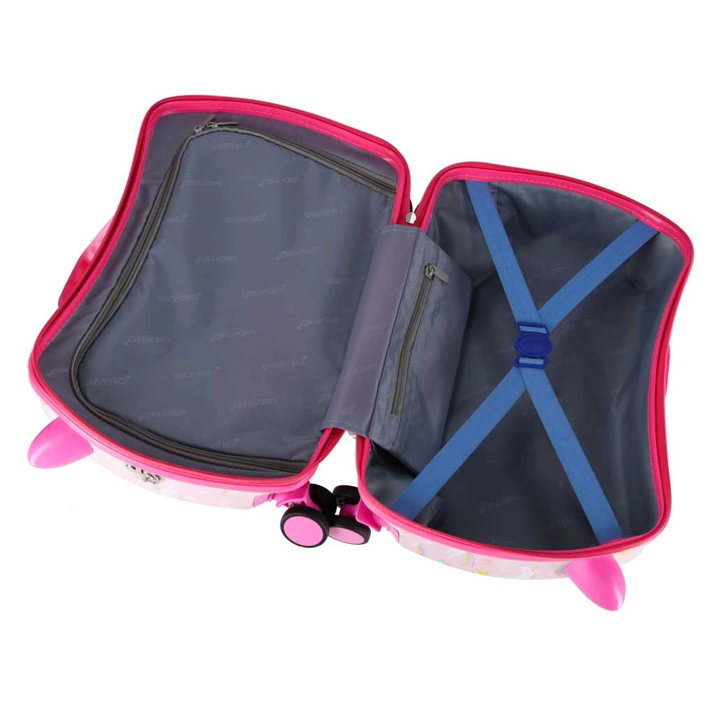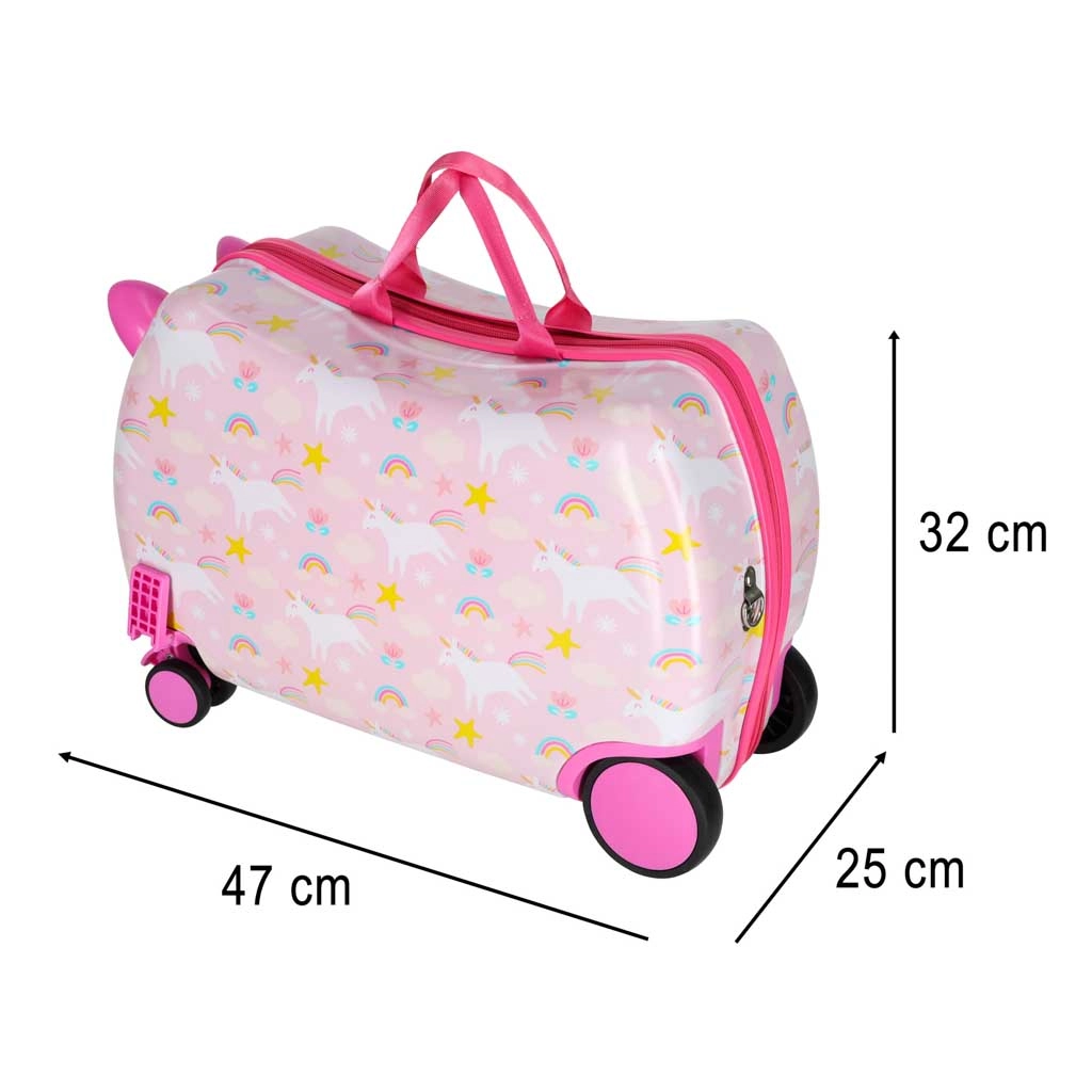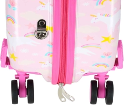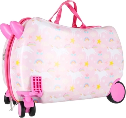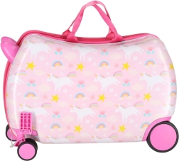 Giv børnene en sjov og bekymringsfri rejse. Denne børnekuffert på hjul kombinerer komfort, funktionalitet og et eventyrligt design med enhjørning. Takket være kabinemål er den ideel som håndbagage, og dens hårde skal beskytter indholdet mod stød.
