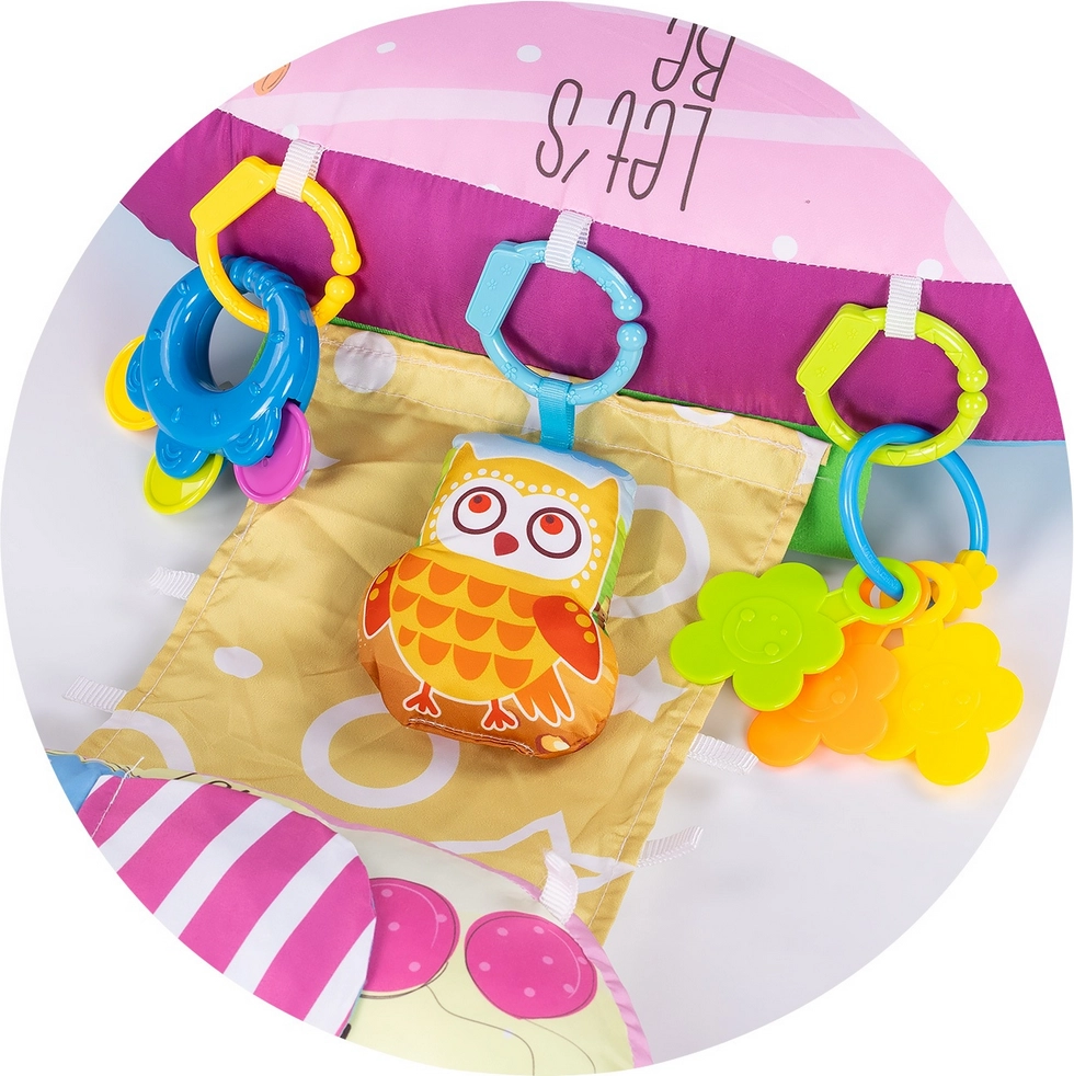Puden er praktisk, let at vedligeholde og perfekt til tummy time (maveleje), lette øvelser og de første forsøg på at sidde selv. Farverige motiver og ophængt legetøj (på udvalgte varianter) understøtter sansestimulering og udviklingen af finmotorik.