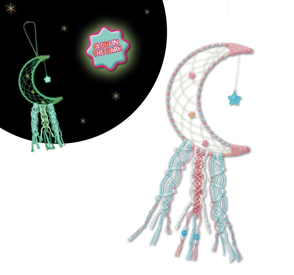 Med dette originale sæt kan børn nemt lave deres egen drømmefanger i måneform. Efter lyspåvirkning gløder den blidt, så den passer perfekt over sengen, ved vinduet eller på væggen og gør værelset hyggeligt.