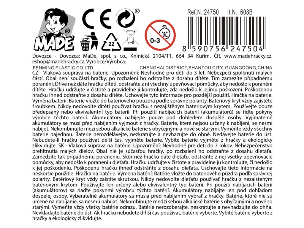 Sættet leveres med et Pack 3,7 V batteri, så børnene kan begynde at lege næsten med det samme. At samle skinner og styre toget motiverer til kreativ leg og læring gennem sjov.