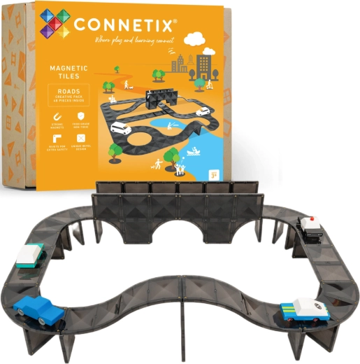 Opdag det kreative byggesæt af magnetiske veje fra CONNETIX med 48 dele, som lader børn bygge veje, broer og kryds og samtidig udvikle STEAM-færdigheder, finmotorik og rumlig forestillingsevne. Stærke neodymmagneter, sikre materialer uden BPA og kompatibilitet med andre sæt sikrer timevis af meningsfuld leg.
