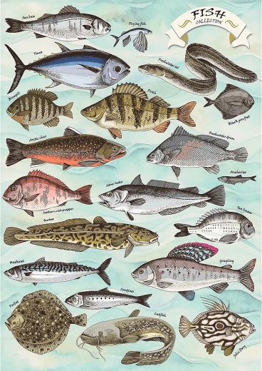 Dyk ned i den fascinerende TREFL Premium Plus-kollektion, der byder på nøje udvalgte motiver og førsteklasses udførelse. Motivet Finders Keepers: Fisk præsenterer et farverigt galleri af illustrerede arter, som minder om et underhavsleksikon – ideelt til afslapning og som gave til oceanelskere og fans af kvalitetspuslespil.