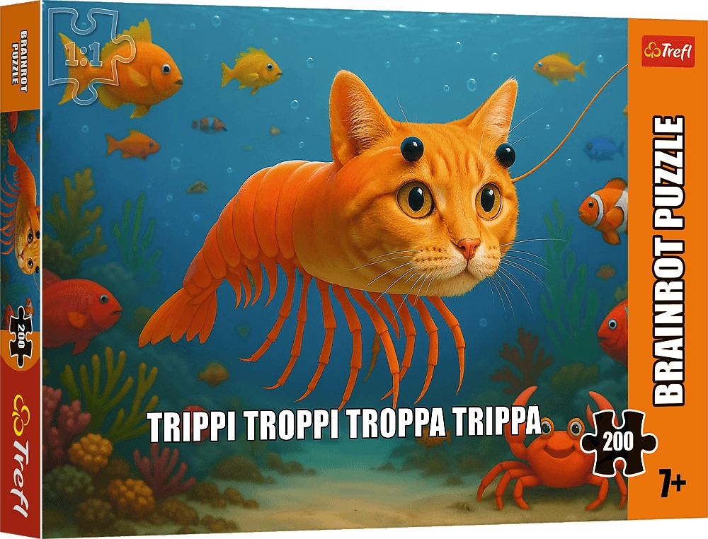 Oplev det legesyge og psykedeliske motiv Trippi Troppi Troppa Trippa fra BrainRots-serien, som bringer farverigt kaos og glæde i hver eneste brik. Puslespillet Trefl 200 brikker er et ideelt valg til familieeftermiddage, træning af koncentration og udvikling af finmotorik.
