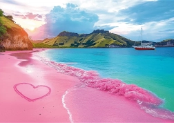 Nyd afslapning med at lægge TREFL-puslespil med motiv af en lyserød tropisk strand. Pakken indeholder 1000 brikker og en medfølgende plakat for lettere lægning. Når det er samlet, bliver billedet 68 × 48 cm.
