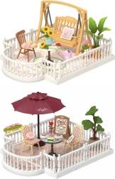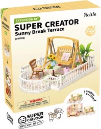 Skab et hyggeligt hjørne på dit mini dukkehus med udvidelsen Terrasse med gynge fra Robotsime. Modulet kan let “klikkes” på modeller i Super Creator-serien, så du på få øjeblikke får en stilfuld altan med gynge, bord og dekorationer. Uden lim og værktøj, med mellem sværhedsgrad og et skønt afslappende udtryk for børn og voksne.