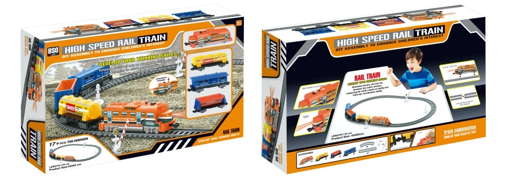 Sættet indeholder 17 dele med en samlet banelængde på 170 cm og mål for den samlede bane på 45 × 65 cm. Legetøjet understøtter udviklingen af logisk tænkning, kreativitet og hånd-øje-koordination og introducerer samtidig børn til grundlæggende jernbanedrift og mekanik på en sjov måde.