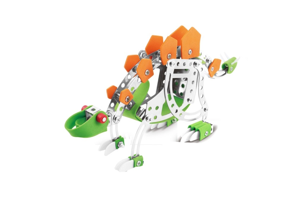 Byg din egen dinosaur! Dette metalkonstruktionssæt stegosaurus indeholder 125 dele, som samles med skruer og møtrikker. Kombinationen af metaldele og plasttilbehør sikrer holdbarhed og et realistisk udseende. Bygning er sjov, lærerigt og samtidig en behagelig udfordring for fingernemme børn og voksne.