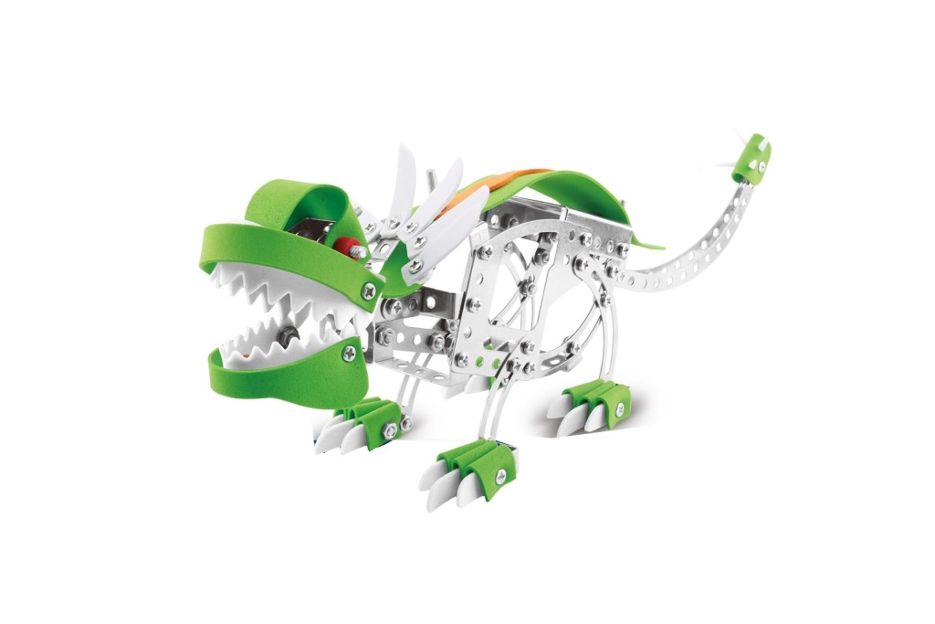 Oplev en sjov udfordring for både små og store konstruktører: et metalbyggesæt af dinosauren Styracosaurus med 192 dele. Det kombinerer metaldele med plasttilbehør og samles med skruer og møtrikker til en stabil, realistisk model. Bygningen er nem, underholdende og stimulerende, ideel til at udvikle tålmodighed, finmotorik og teknisk tænkning.