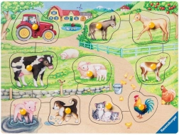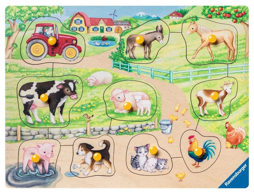 Ravensburgers træpuslespil fra serien Mine første træpuslespil giver børn glæde ved at lære gennem leg. Ti solide brikker med kærligt illustrerede gårdmotiver hjælper med at udvikle nøglefærdigheder og støtter korrekt pincet- og håndgreb takket være plastgreb på hver brik.