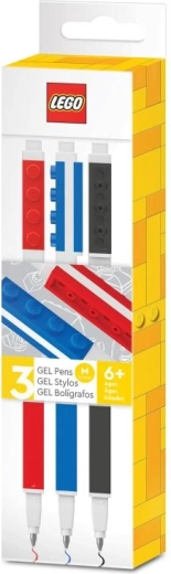 Stilfuldt sæt med tre LEGO gelpenne i farverne rød, blå og sort til daglig skrivning og kreativt skaberi. Pennene har et komfortabelt greb med LEGO-elementer og er kompatible med LEGO-klodser, så du nemt kan personliggøre dem. Ideelle til skole, kontor og som en original gave til LEGO-fans. Glidende gel-skrivning, medium spids, mulighed for at klikke på LEGO-tilbehør, alder 6+.