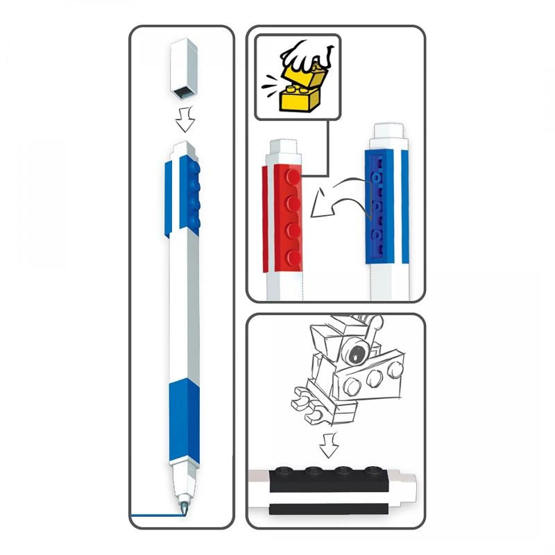 Sættet med LEGO gelpenne bringer sjov til hver note. Hver pen har et modulært “klods”-design med udskiftelige plader, som kan klikkes på penalhuse, linealer eller andet LEGO-tilbehør. Med den medium gelspids er skrivningen flydende og ren, velegnet til skole-noter, notater og underskrifter.