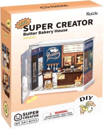 Oplev miniatureverdenen med RoboTime 3D-puslespil mini-bageri. Takket være veludførte detaljer og den beskyttende vitrine skiller den sig ud som et unikt indslag på en hylde eller et skrivebord. Sættet leveres usamlet med en detaljeret vejledning – med lidt tålmodighed skaber du en imponerende mini-scene.